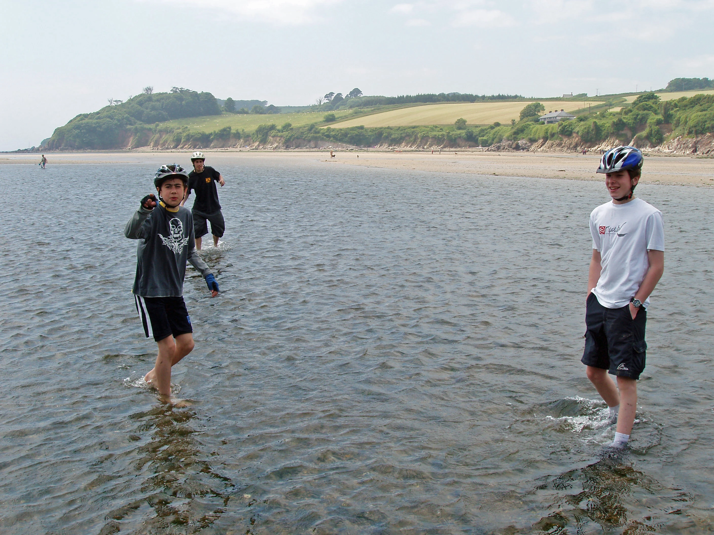 Keir, Will and Joe wading in the Erme estuary.