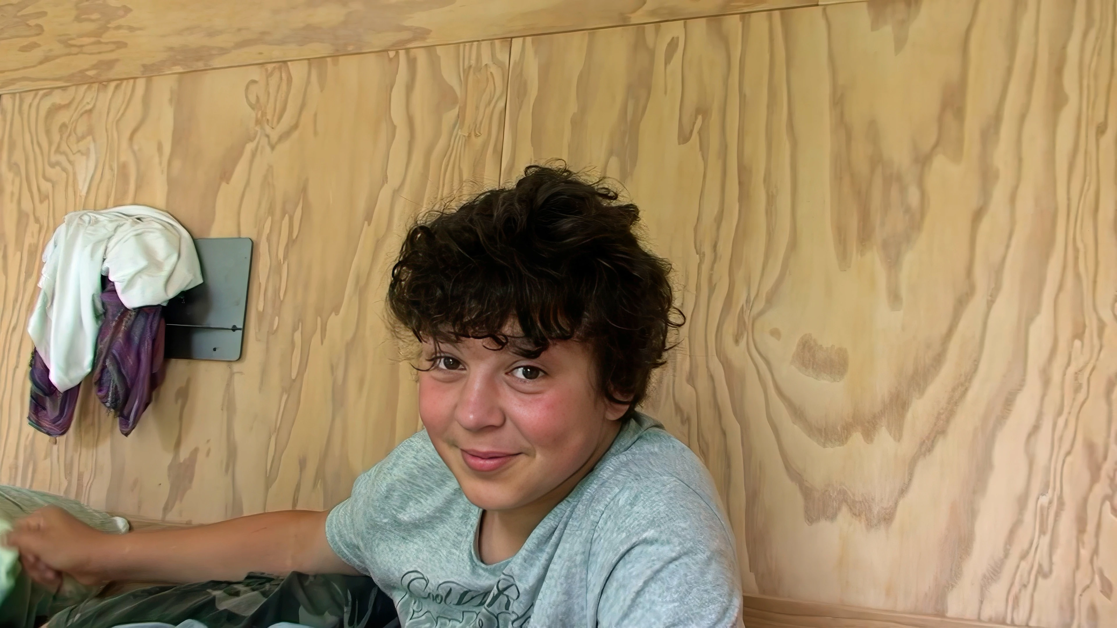 Lawrence delays leaving his comfy bunk after breakfast at Basel Youth Hostel.