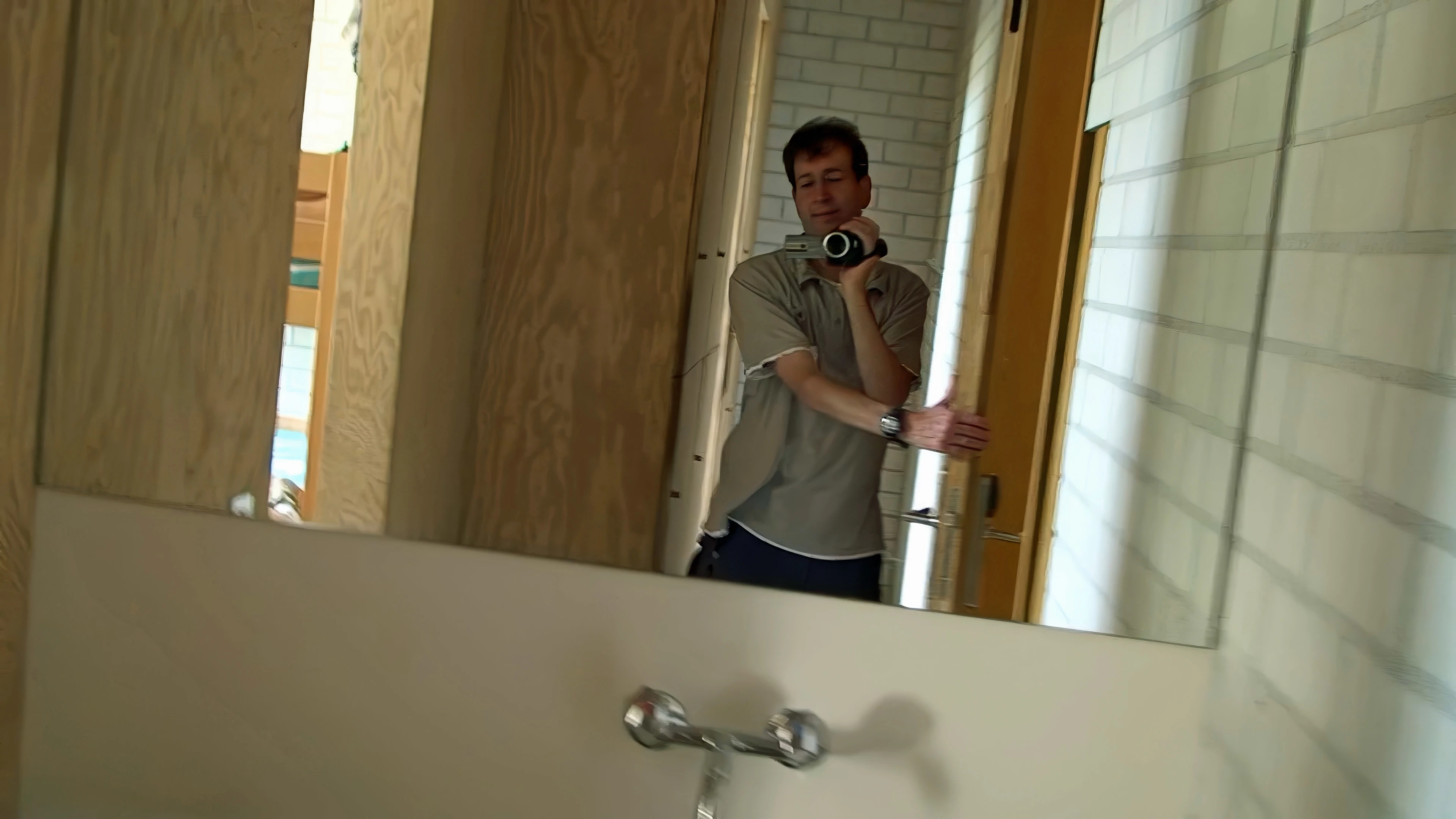 Michael films the modern facilities in our dorm at Basel Youth Hostel.