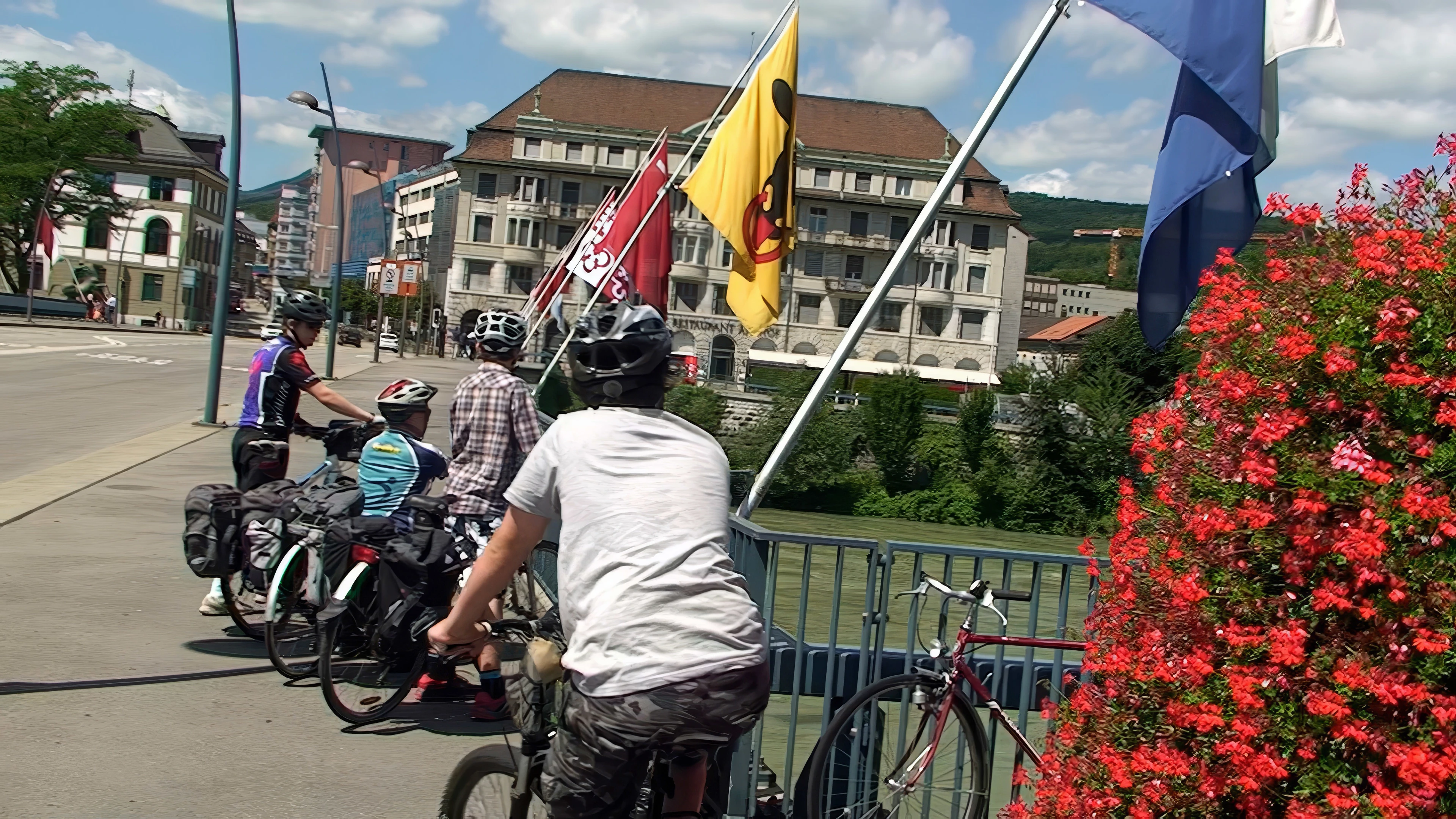 On the bridge over the River Aare outside Olten station, 1.2 miles in.