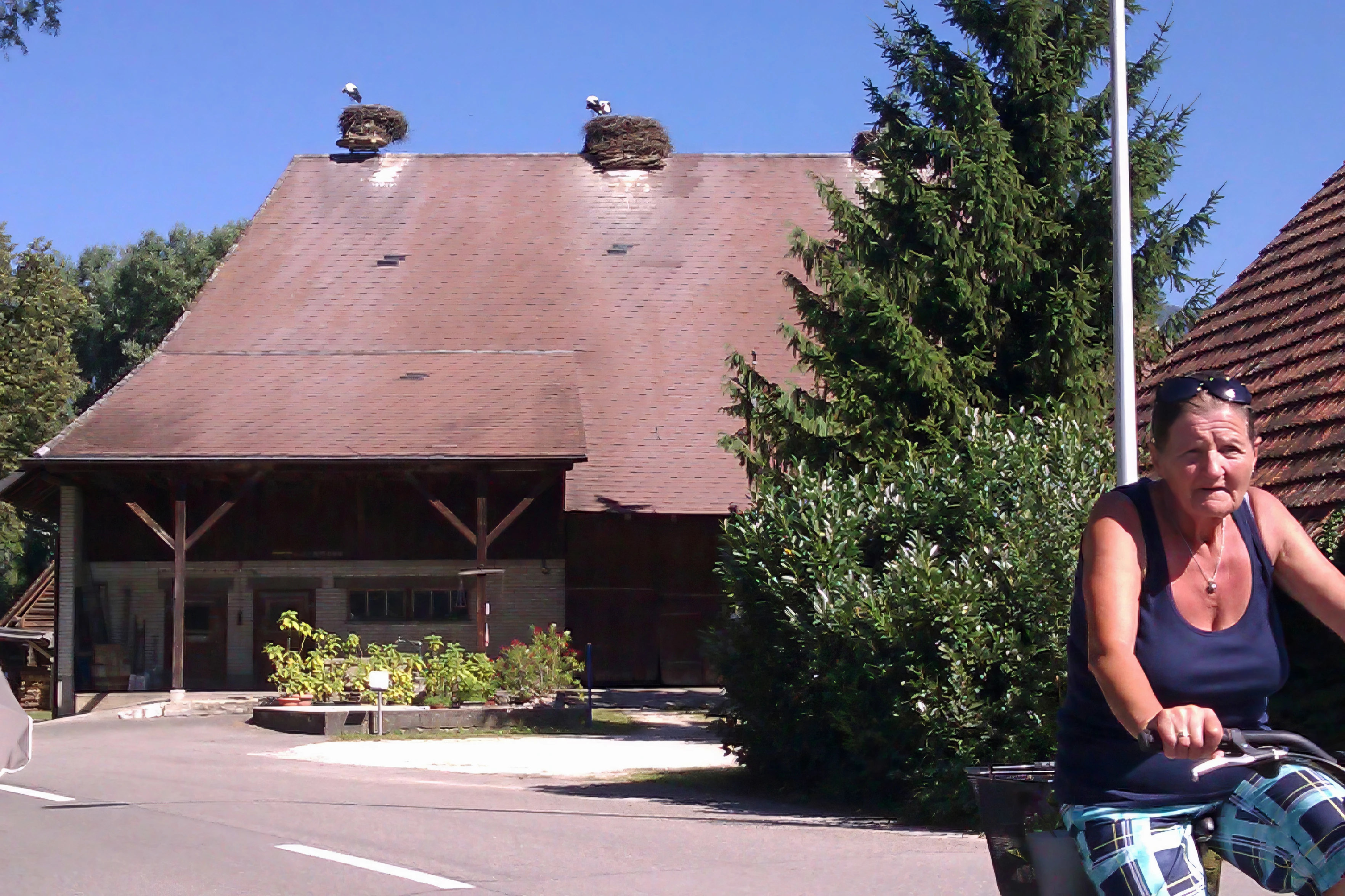 Storks nesting on houses at Altreu.
