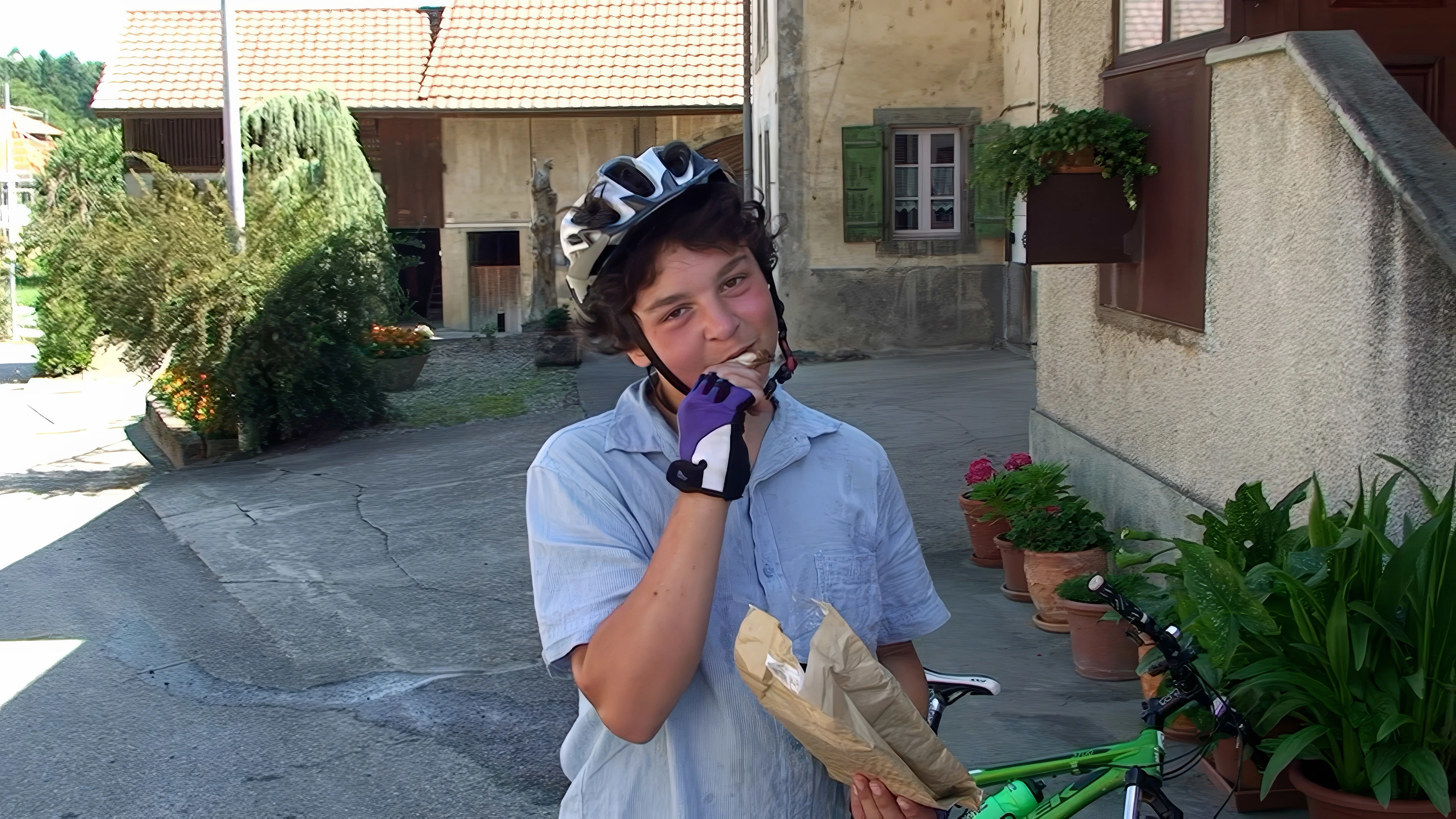 Lawrence in seventh heaven with hot roast chicken picked up earlier at Payerne Coop.