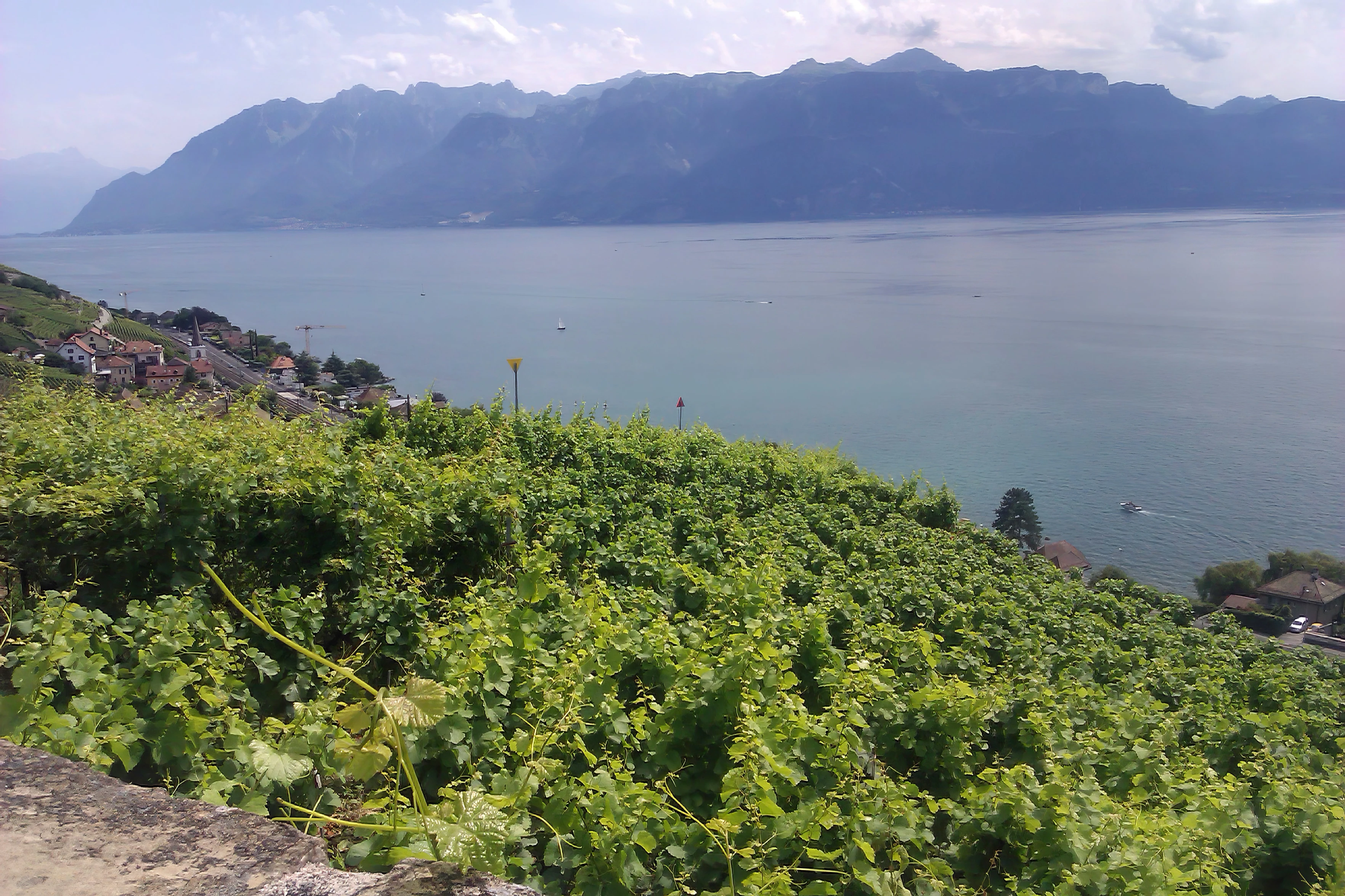 View to Villette church from Route de la Petite Corniche, Lutry.