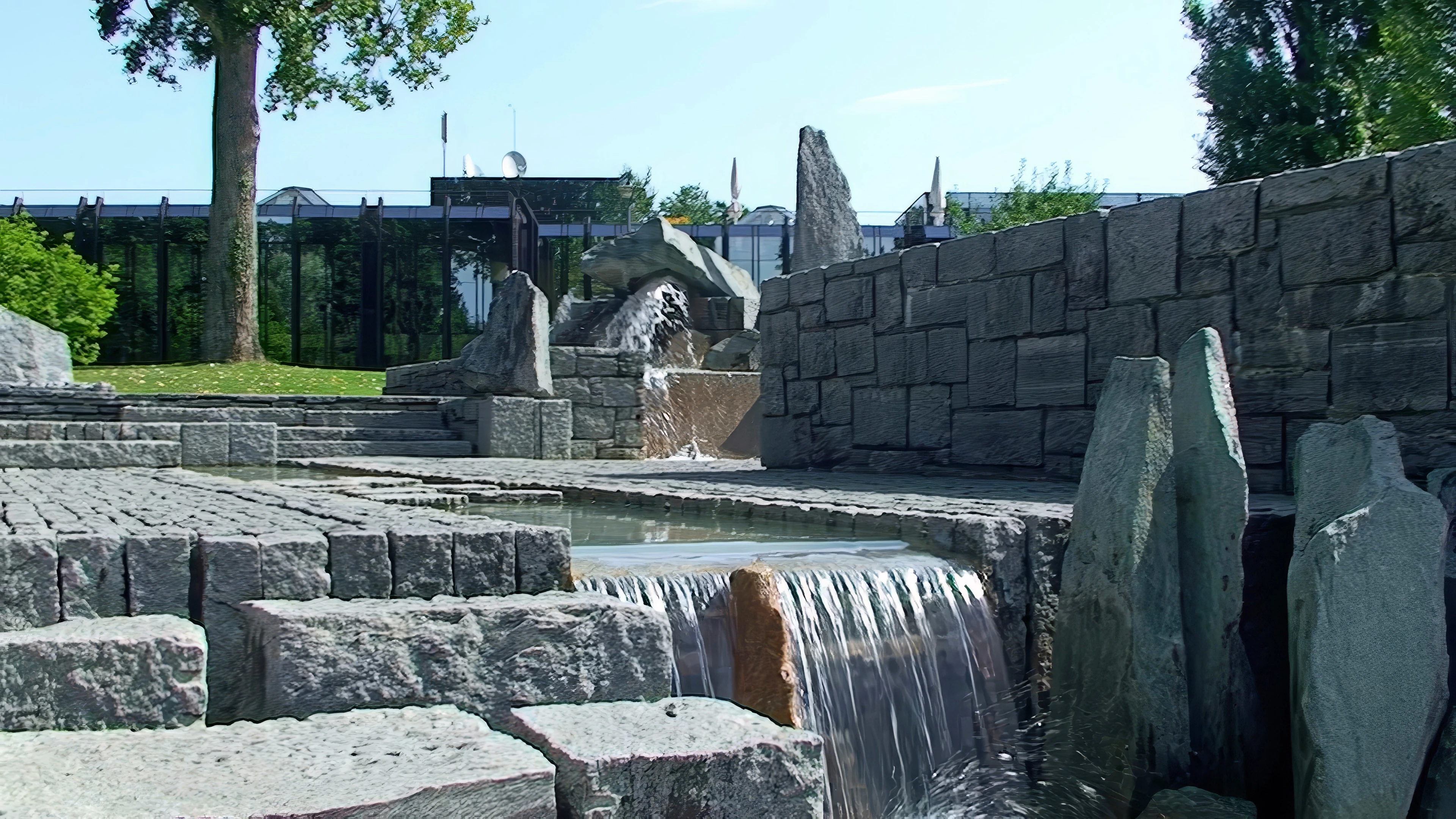 Water feature at the International Olympic Committee HQ, Lausanne, 0.3 miles from the hostel.