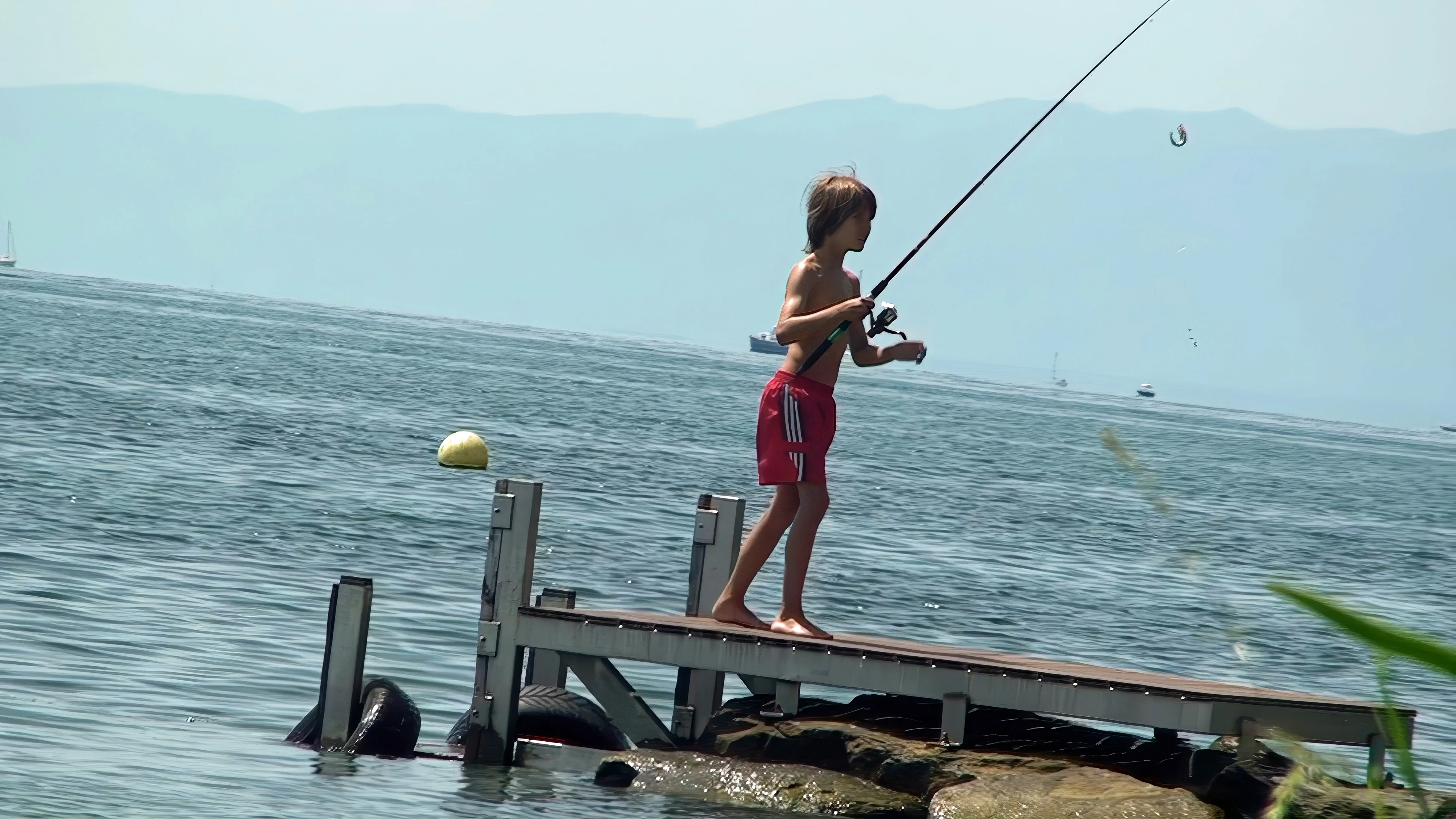 A youngster enjoys his childhood near Ouchy Quay as we lunch.