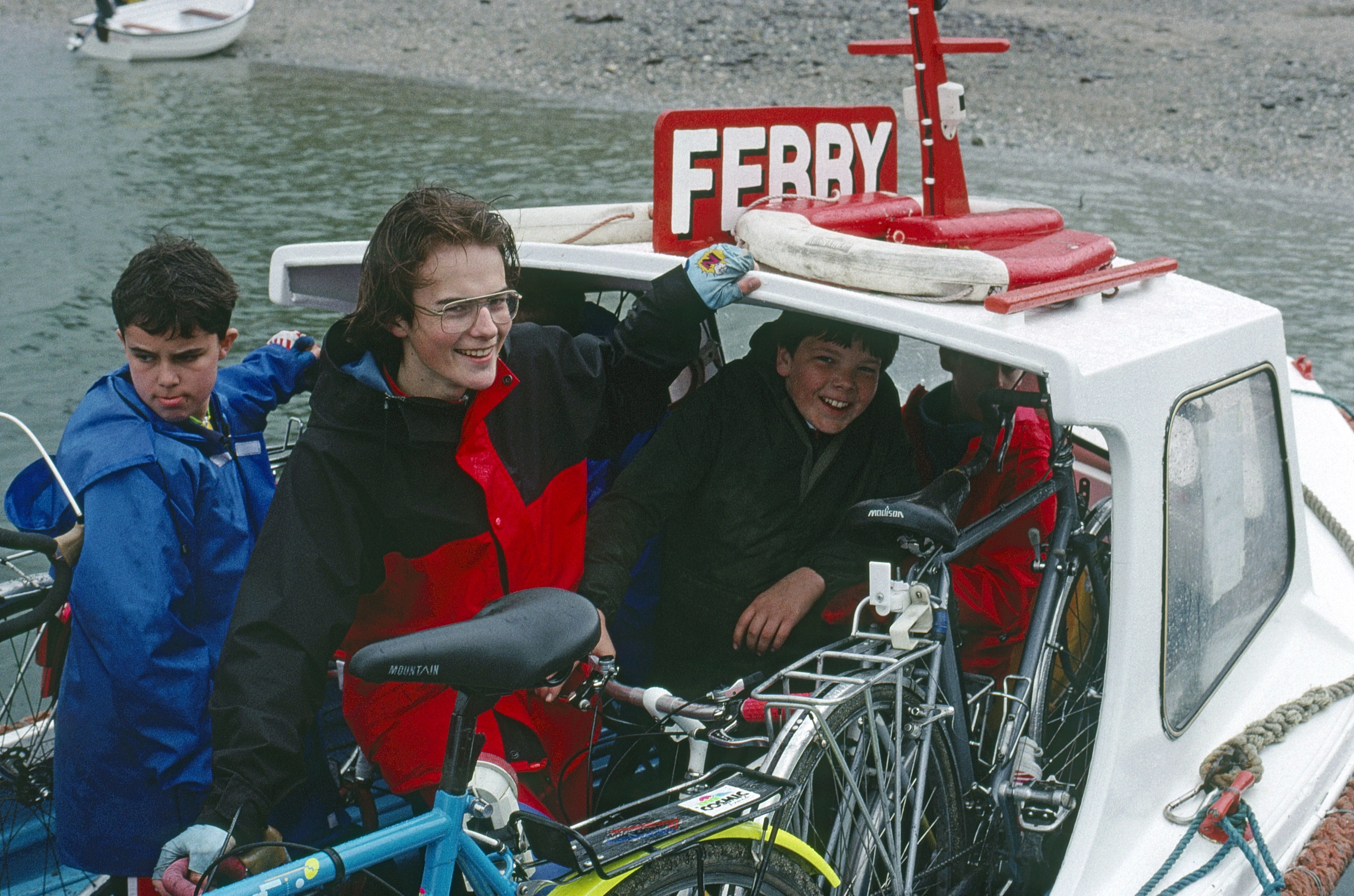 Simon and the two Neils stand on the Helford Passage ferry as the first batch sets off.