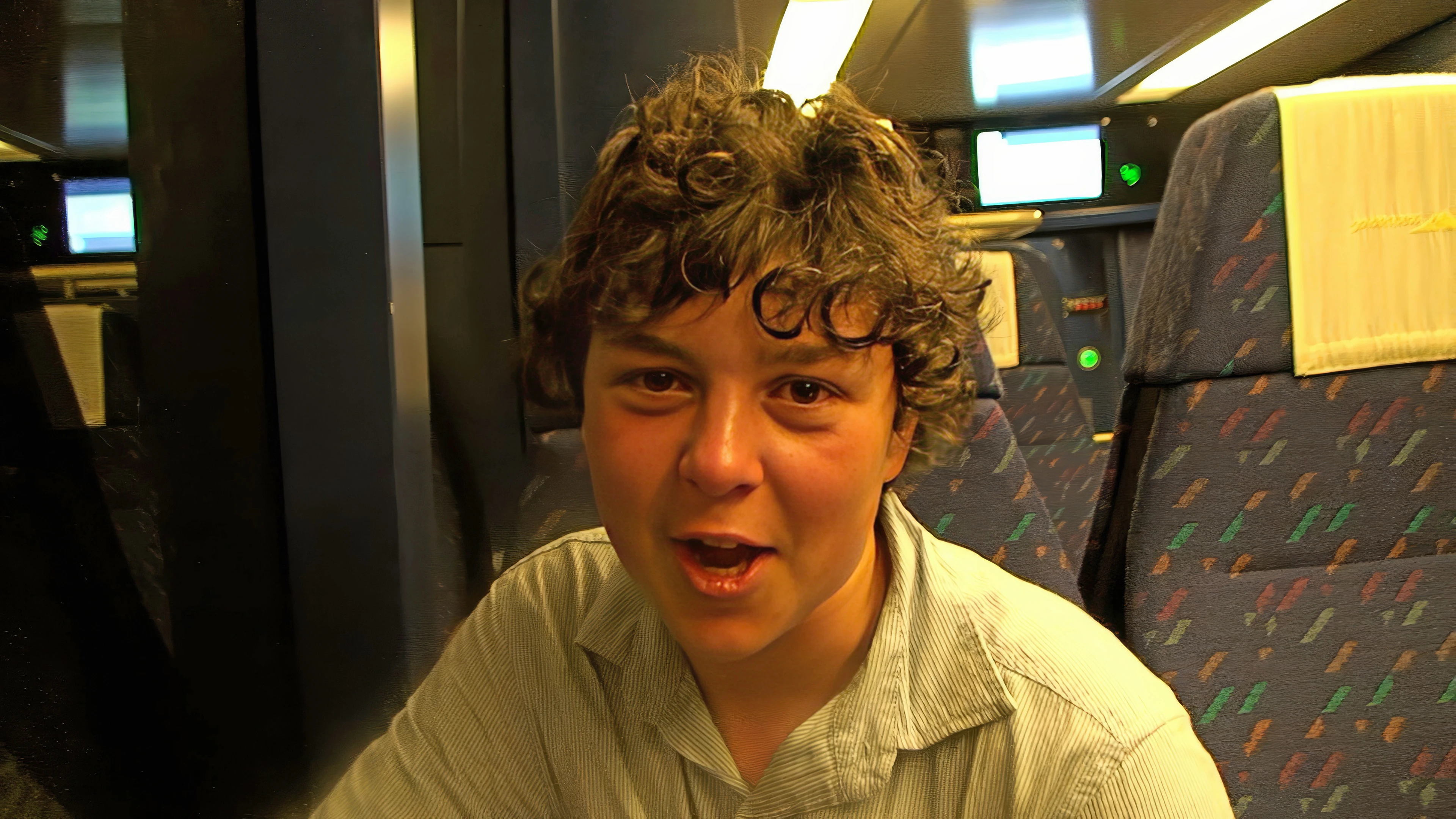 Lawrence tells a story for the camera on our second train of the day, Montreux to Château d’Oex.