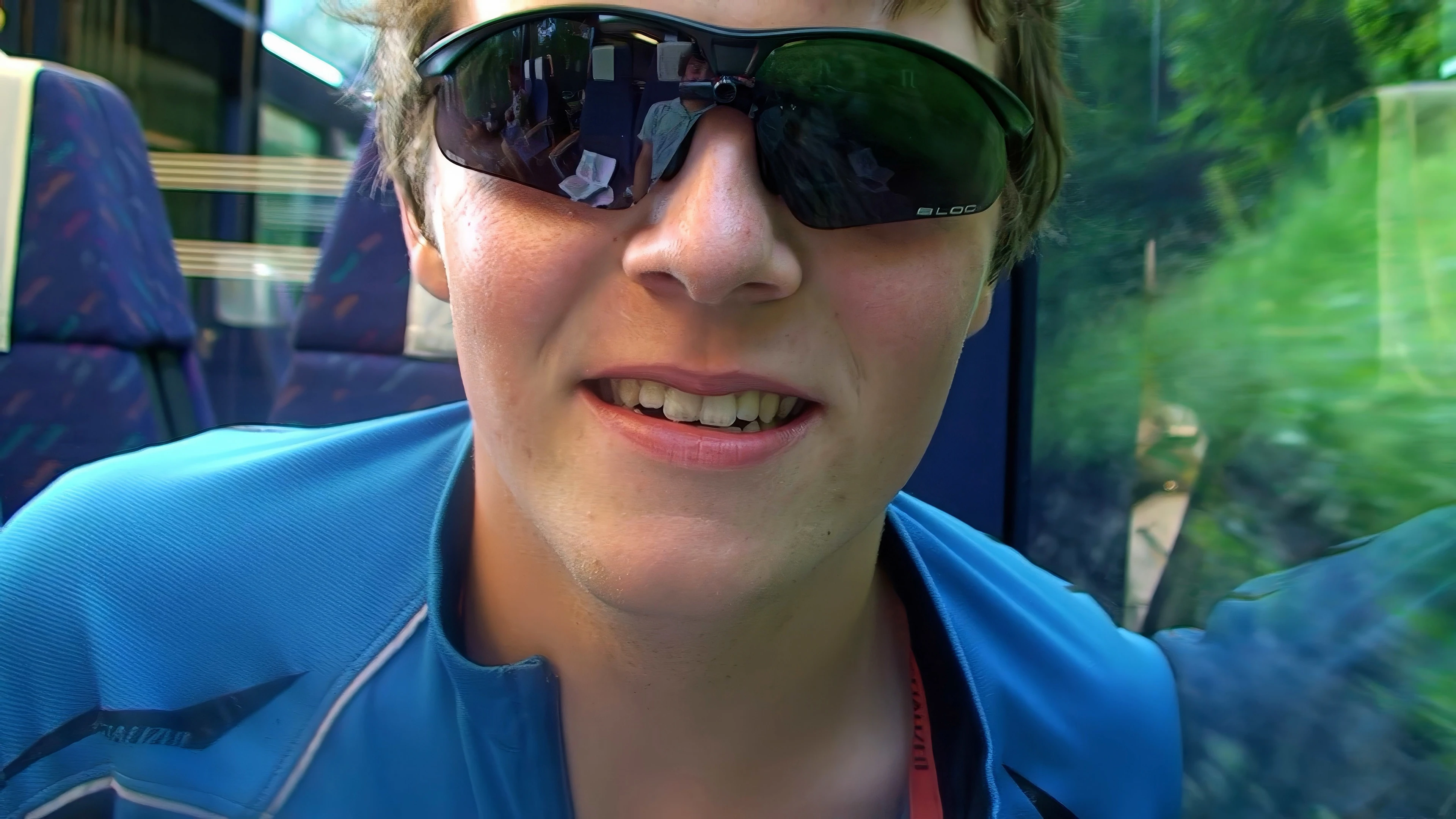 Ash has camera fun with Lawrence as our train climbs into the mountains.