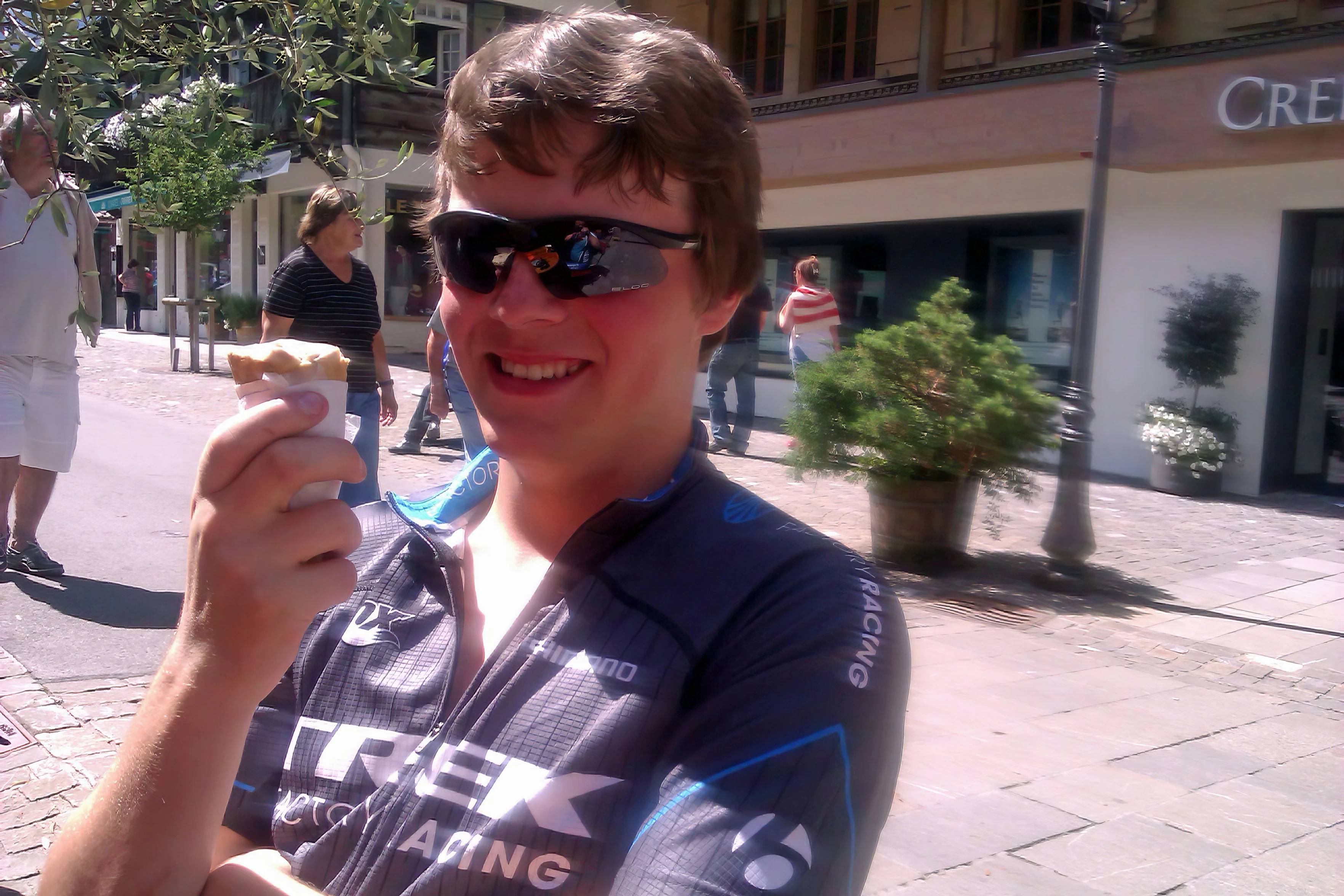 Ash enjoys an ice cream at Early Beck on Gstaad Promenade