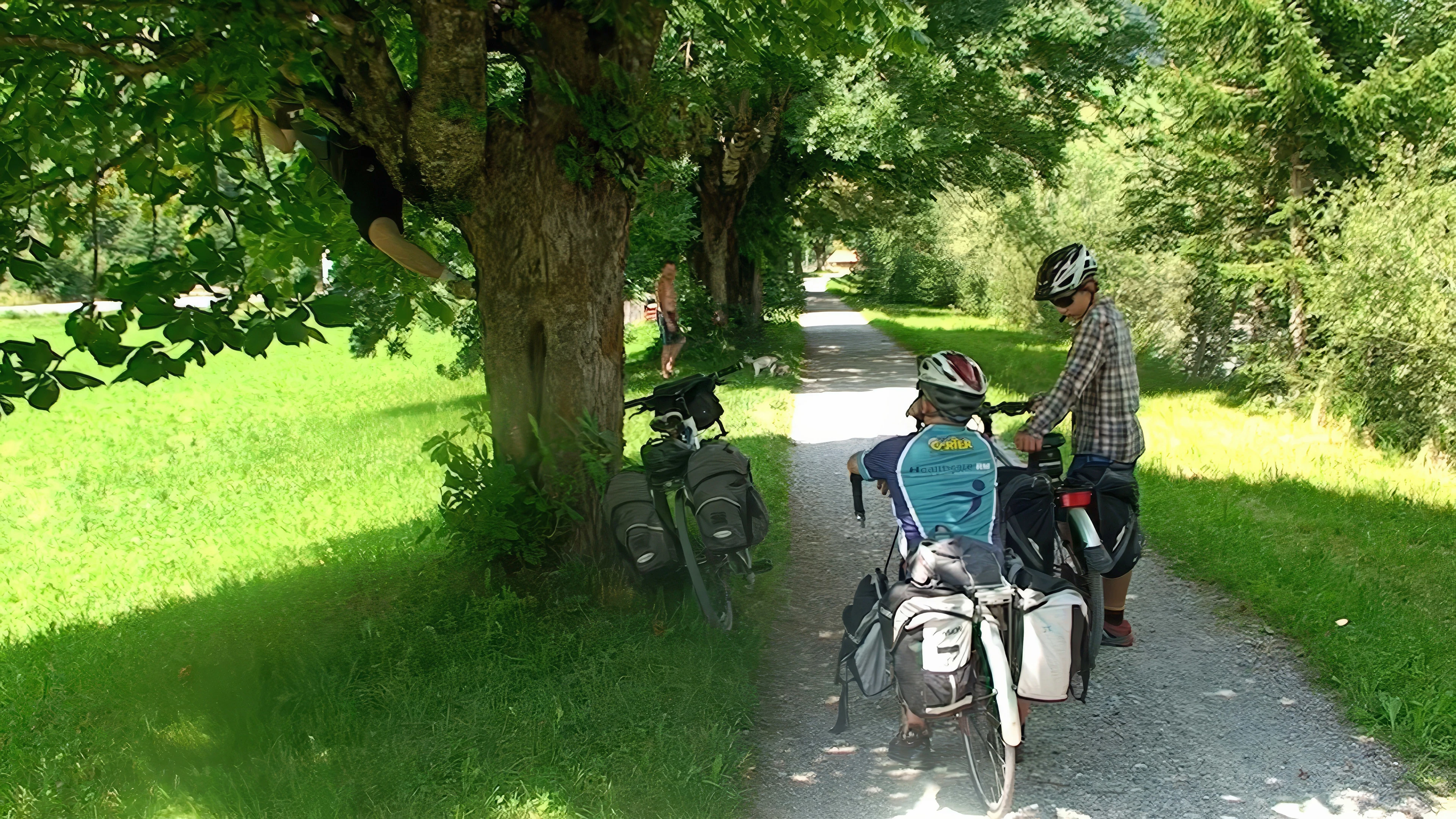Shady tree-climbing near Camping Fankhauser, Zweisimmen—19.2 miles in, not halfway yet