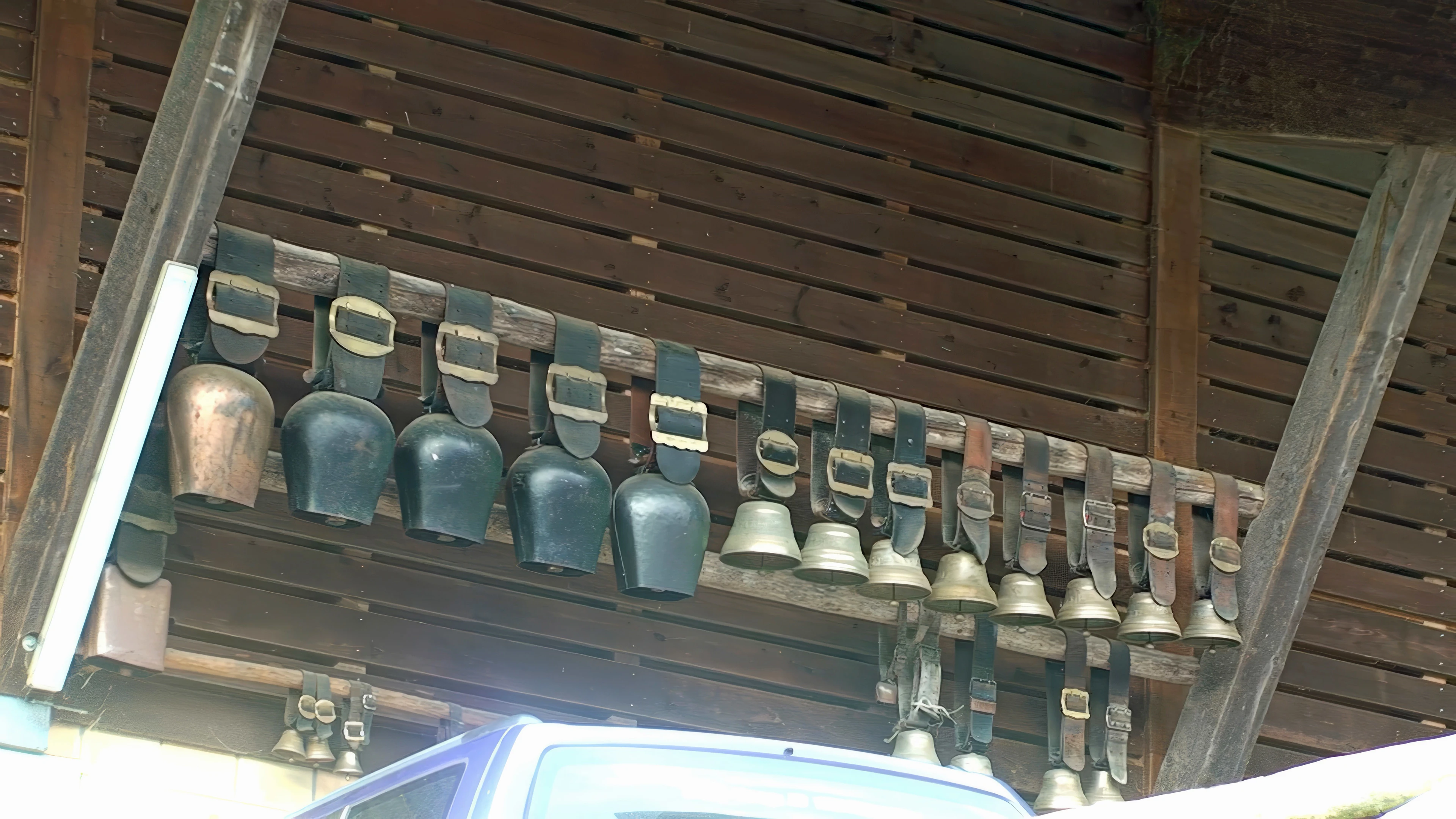 An impressive array of cowbells on a large house near Hohflue, 12.9 miles in