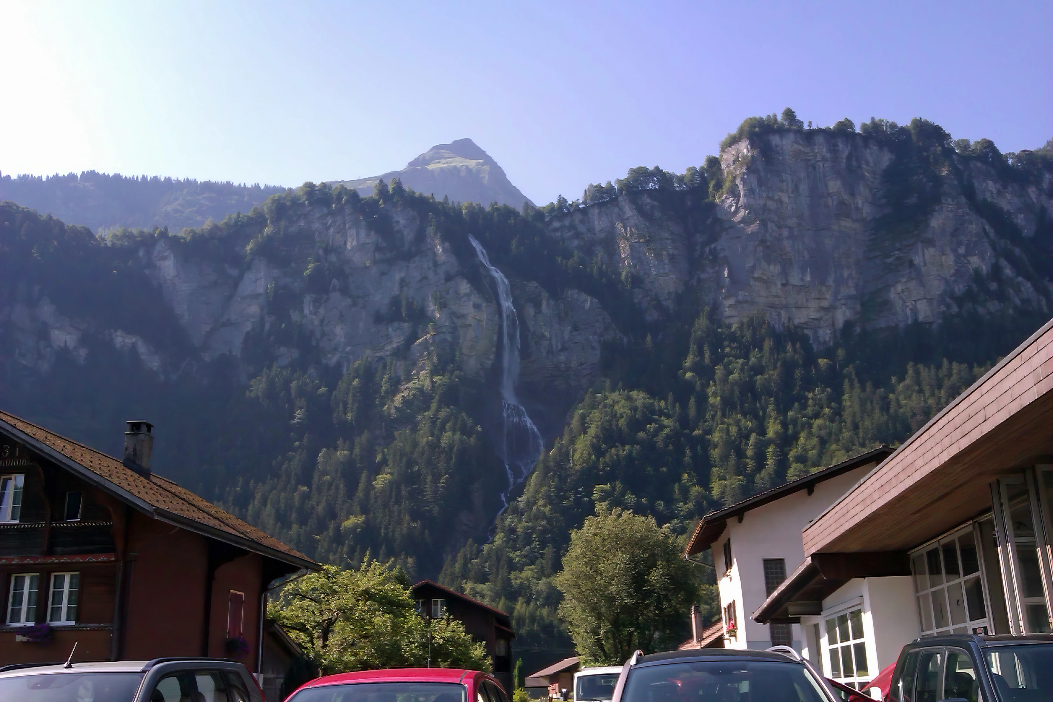 Oltschibach Falls, seen from Route 9 at Unterbach