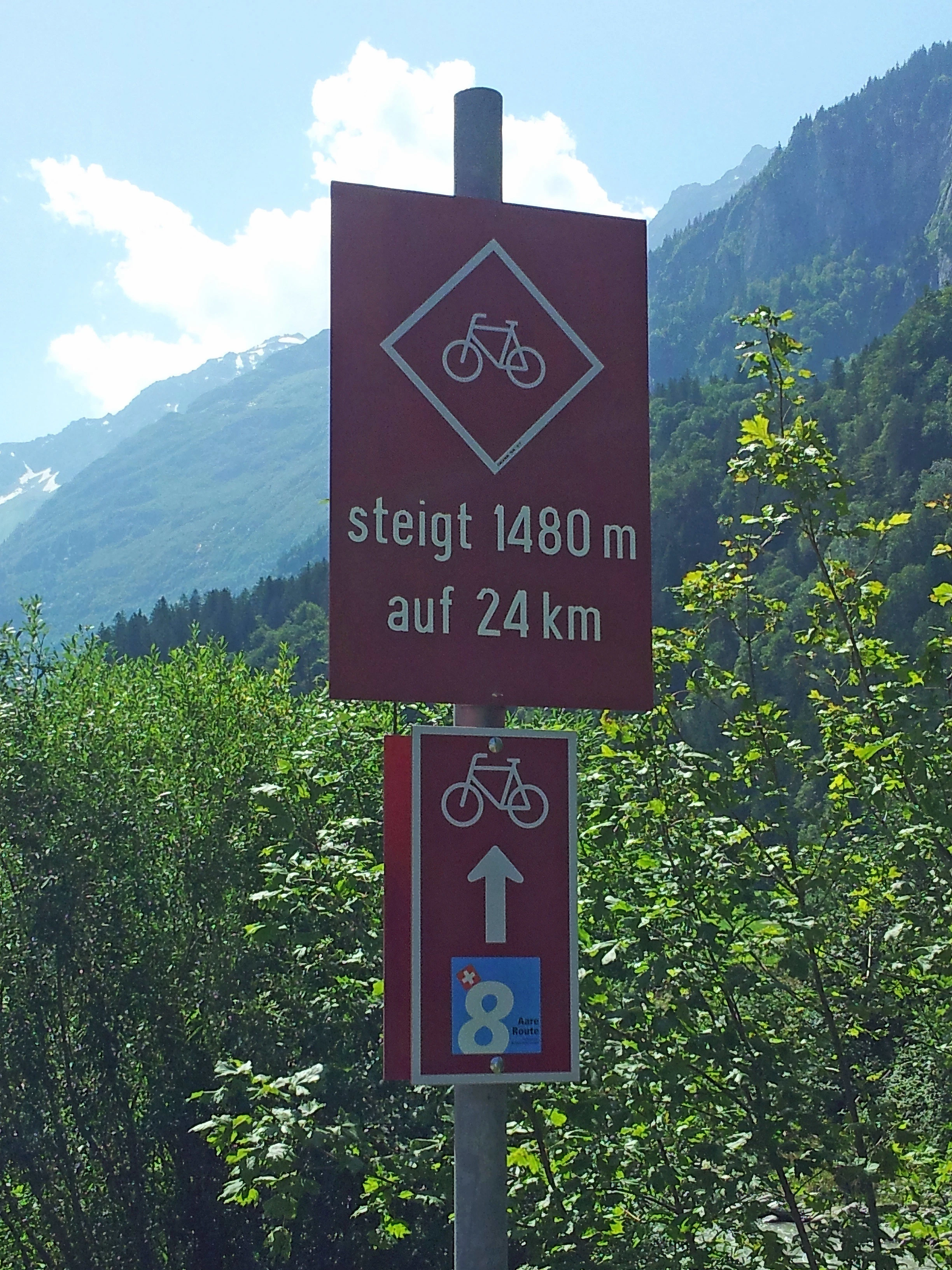 Another worrying sign at Innertkirchen as we start climbing again – 13.0 miles, 638m
