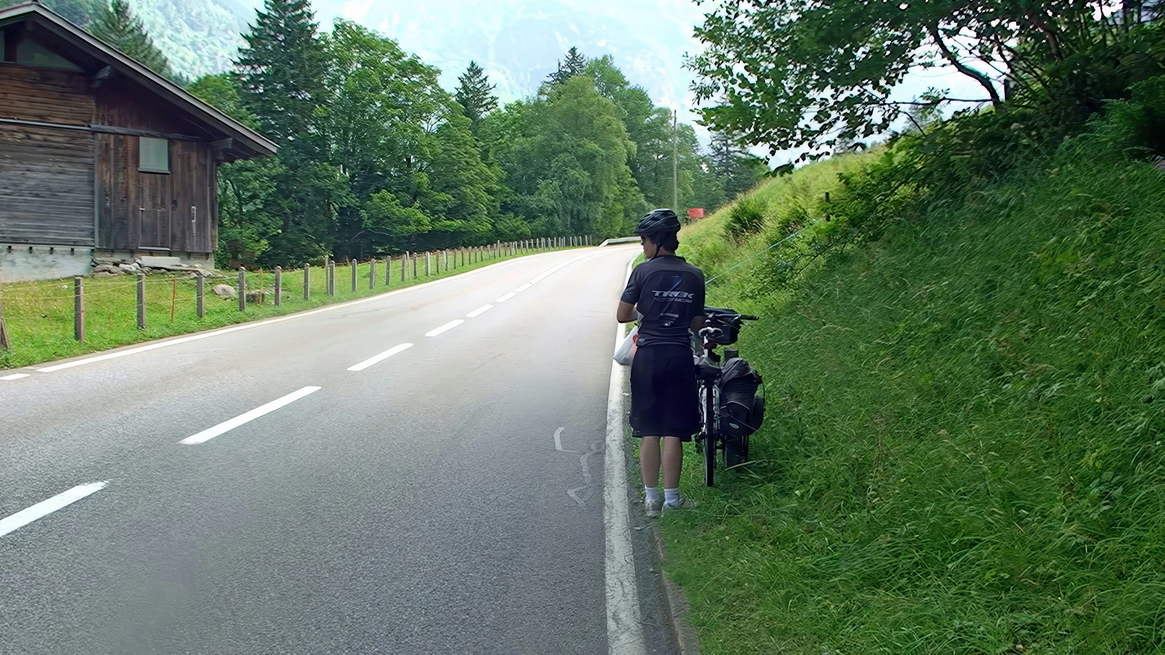 Leaving our roadside lunch spot – 16.8 miles, 966m. Just 12.1 miles to the top!