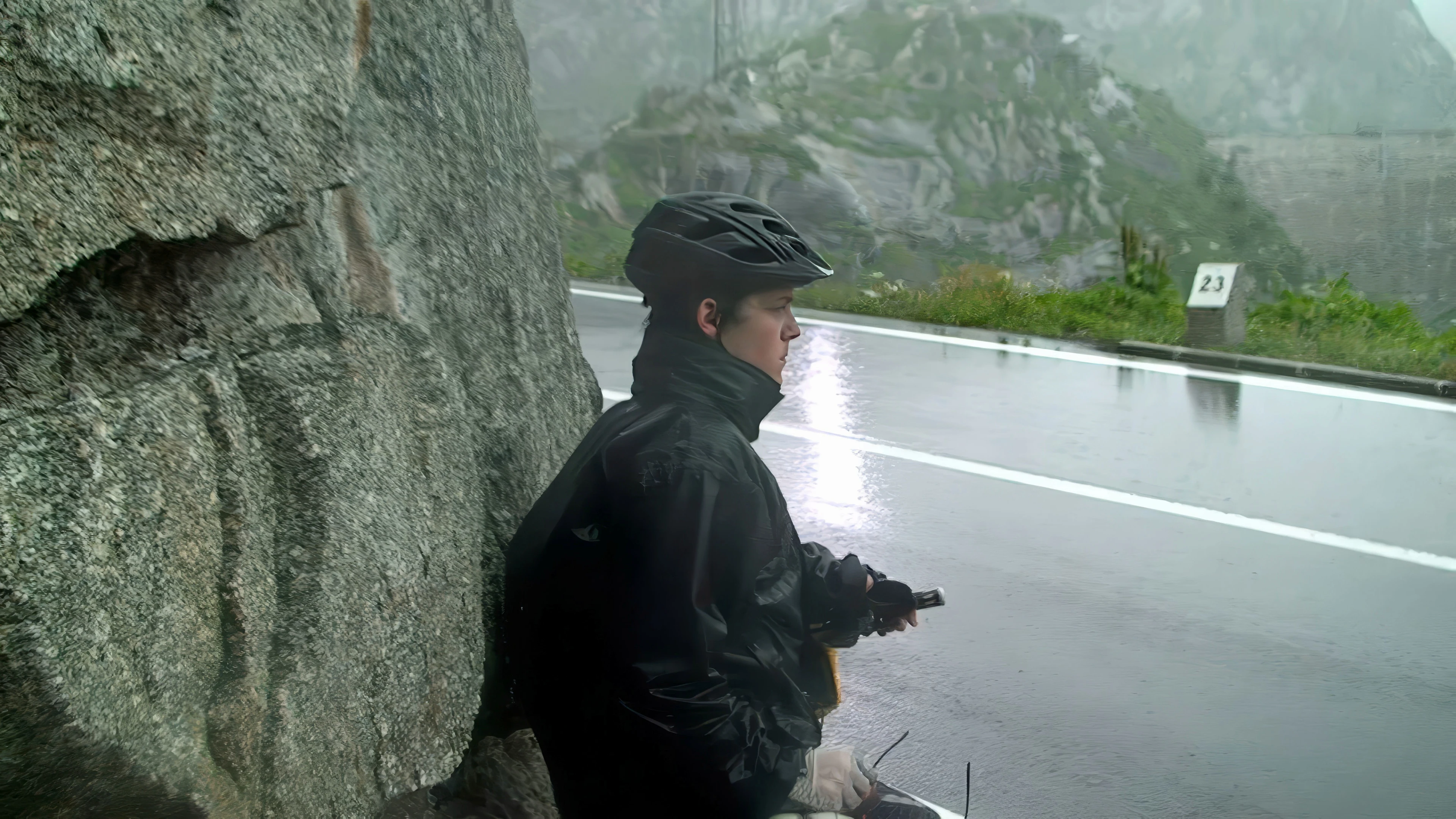 Lightning lights the road, 2.4 miles from Grimsel Pass