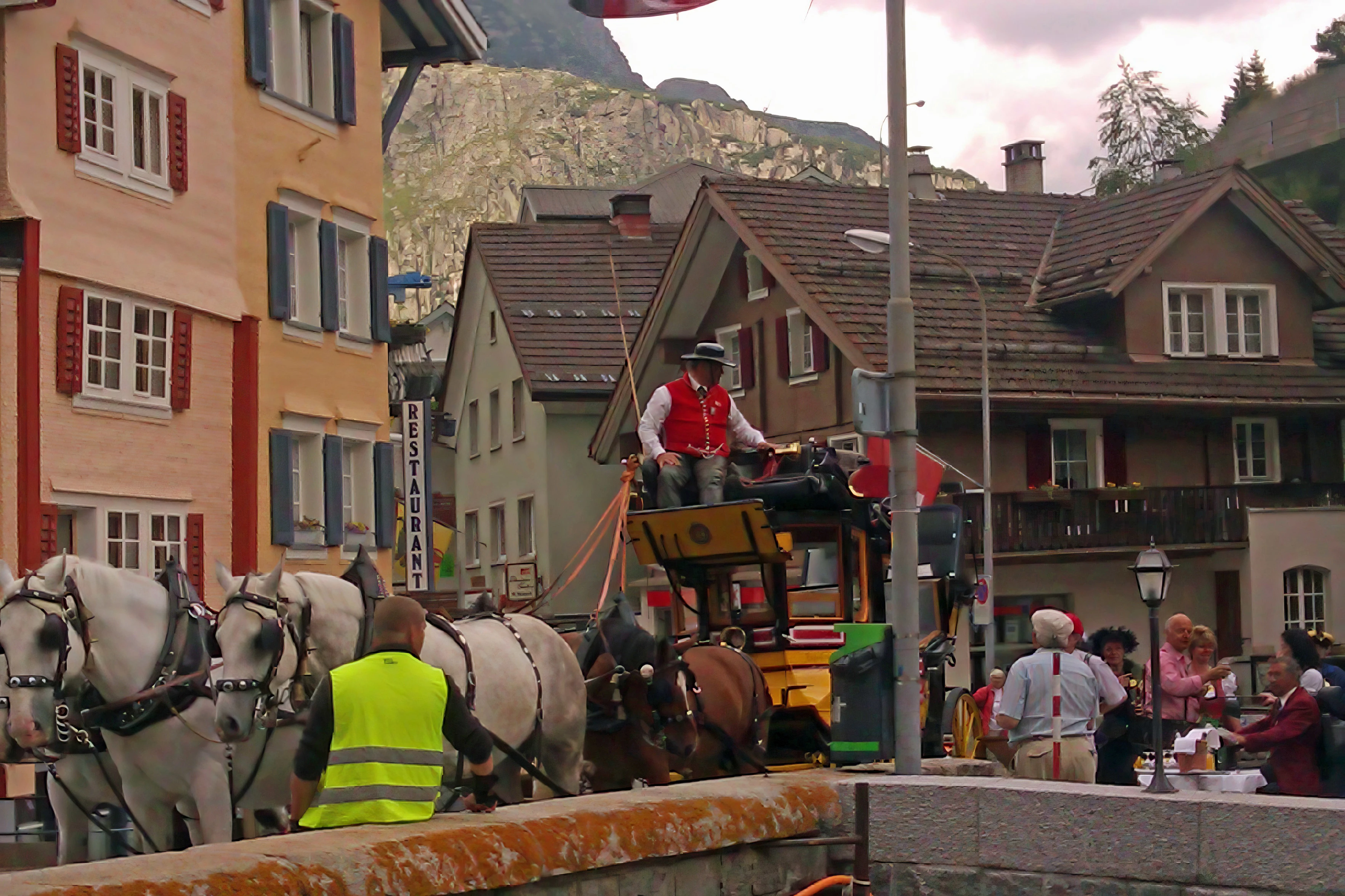 Elderly tourists flock to the horse and trap in Andermatt.