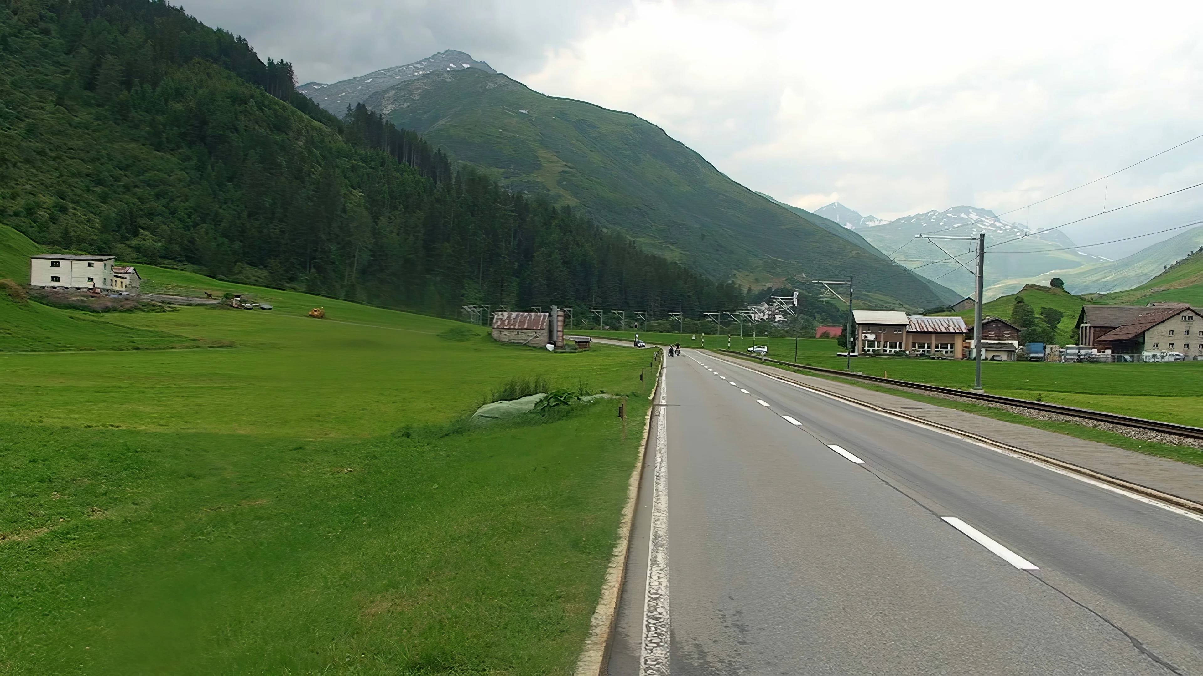 Looking back towards Hospental on the road to Andermatt, 1.1 miles in.