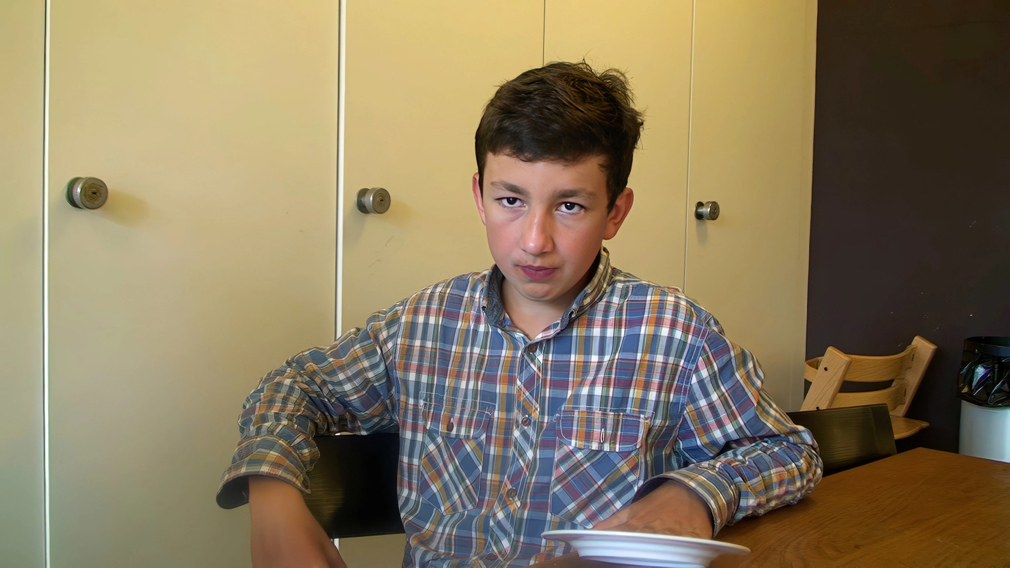 Will polishes off breakfast at Lucerne Youth Hostel.