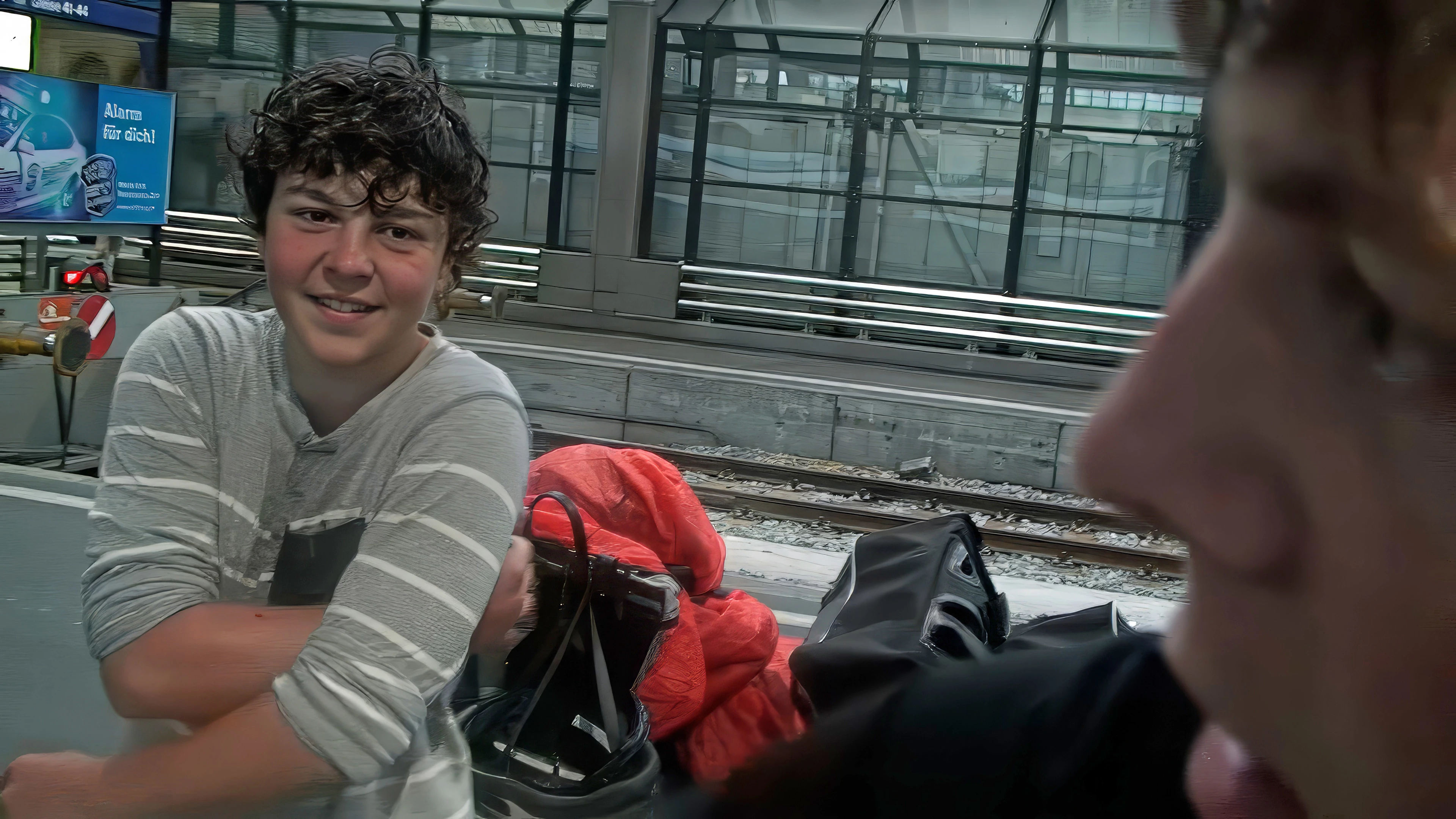 Lawrence in typically good spirits while we wait for our train at Zurich station.