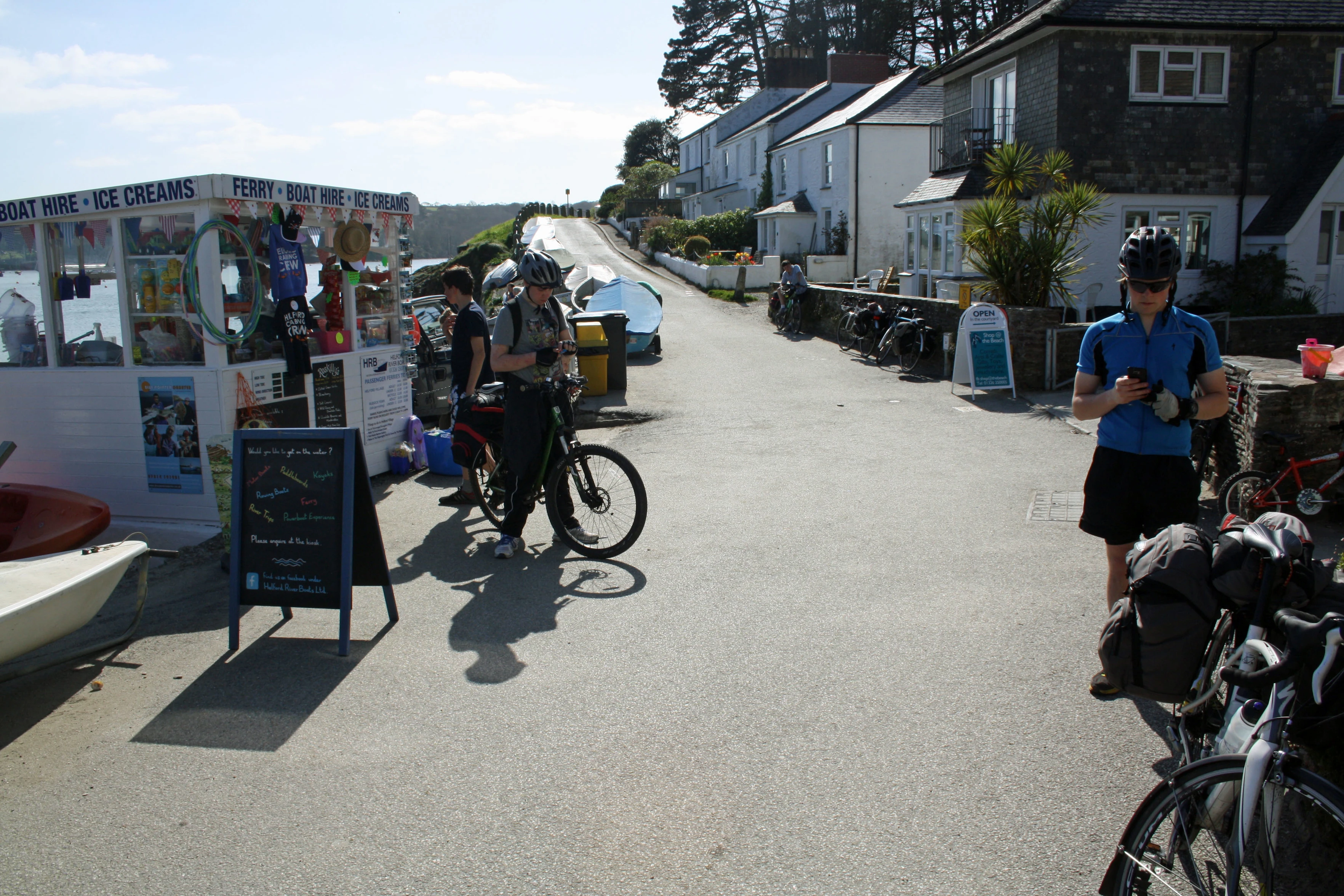 Ice creams on Helford Passage beach while we await the passenger ferry, 19.6 miles in
