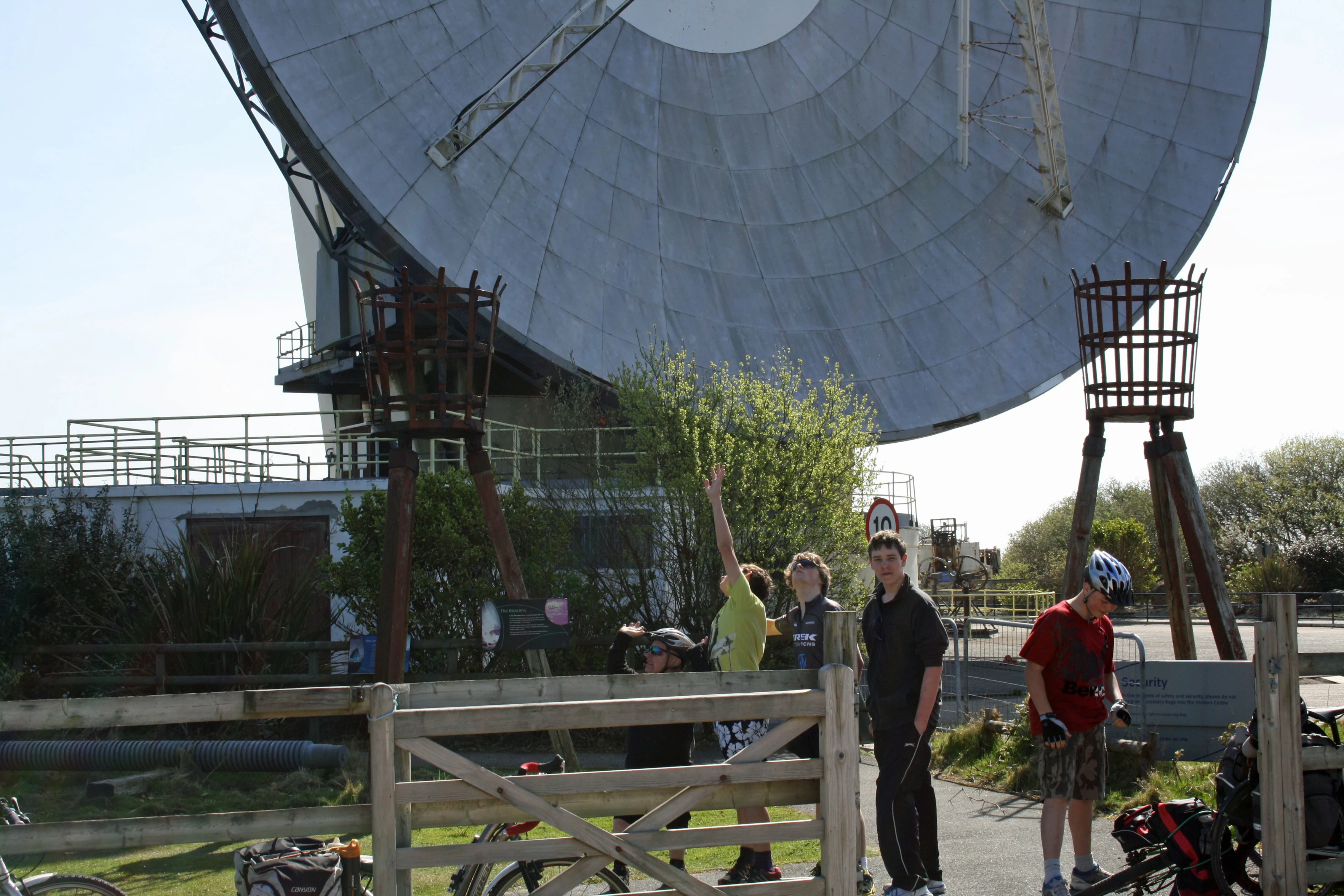 Waiting for our Segway session beside the Arthur dish at Goonhilly Downs