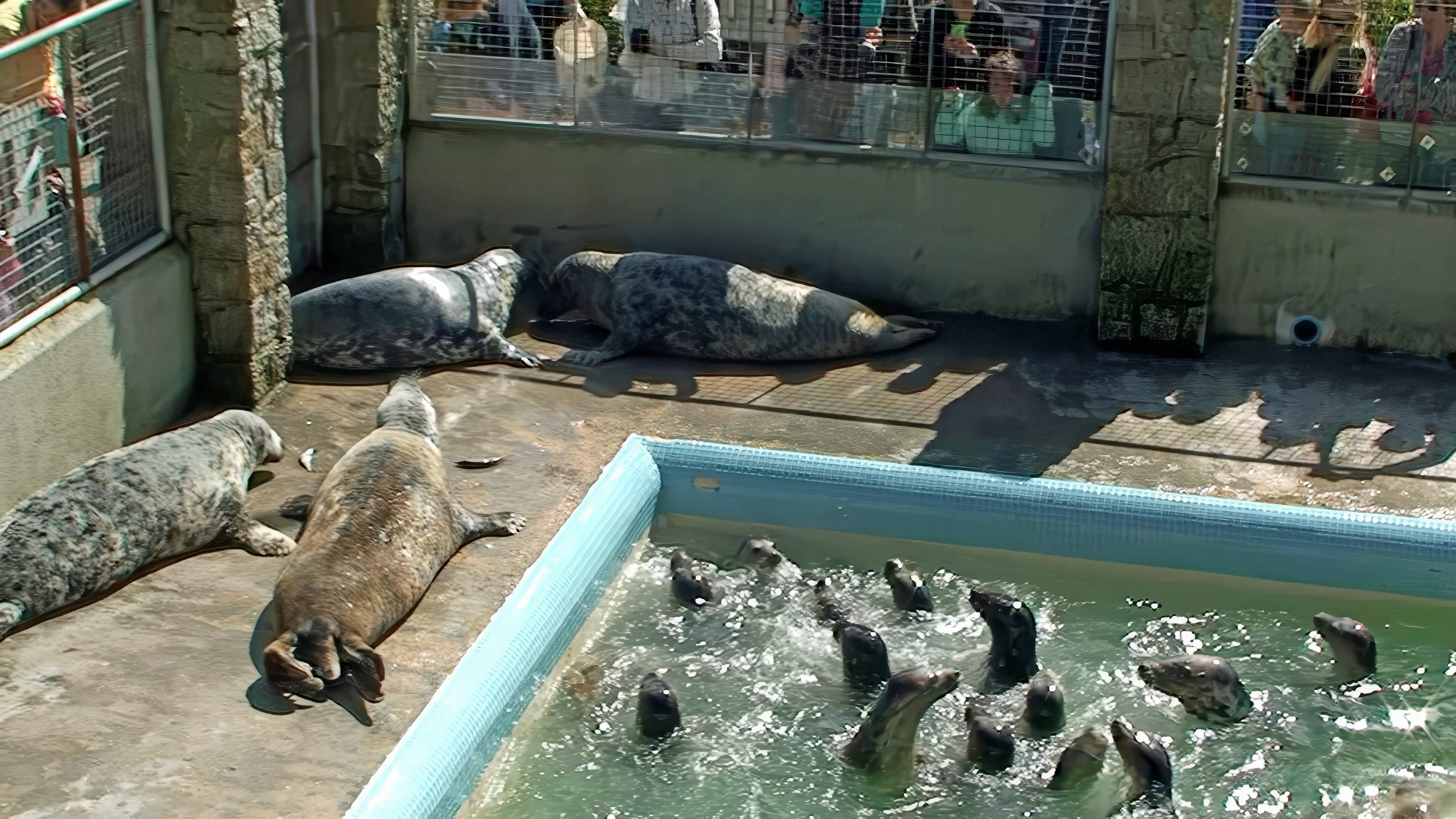 Feeding time in the main pool at Gweek