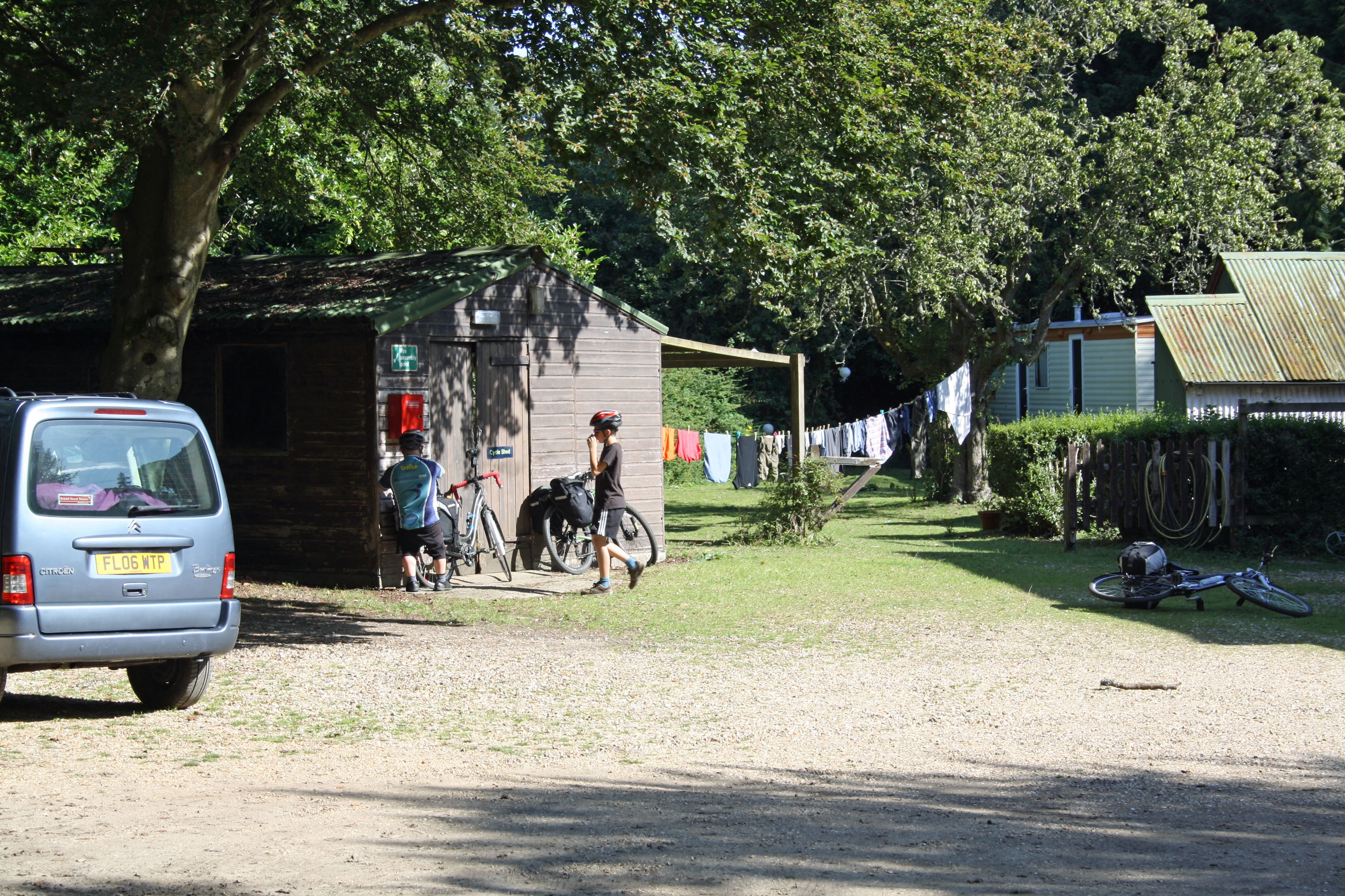 John and George at the bike shed, Burley Youth Hostel.