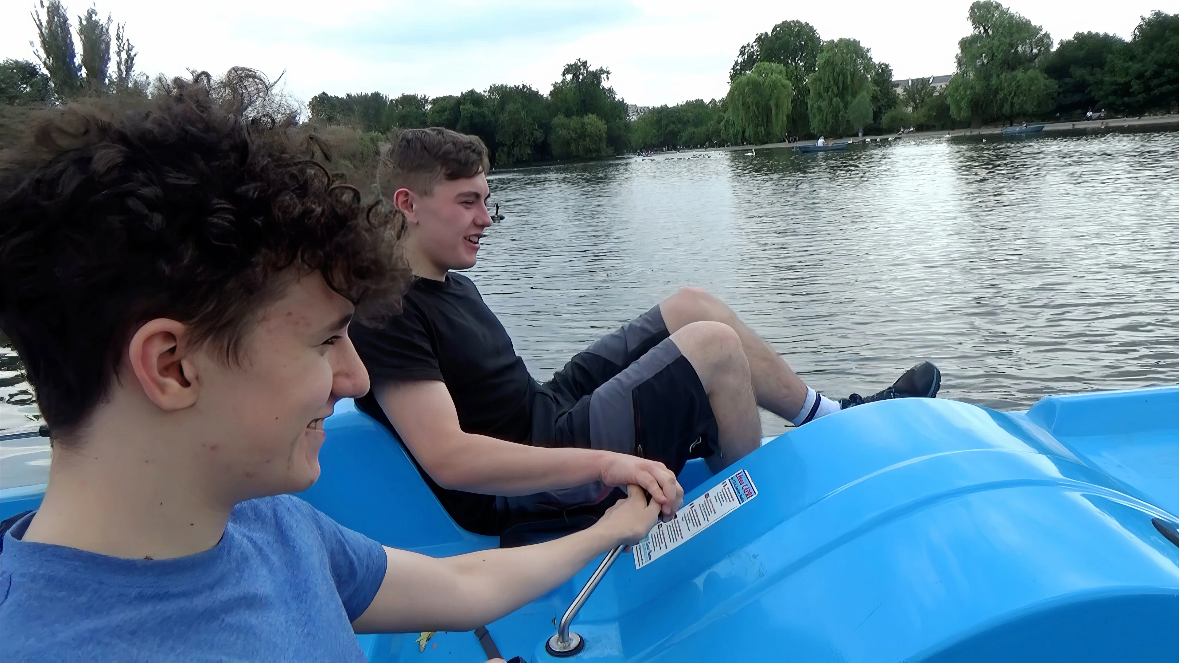 Jude and Dillan get the hang of the pedal boat on Regent's Park Boating Lake