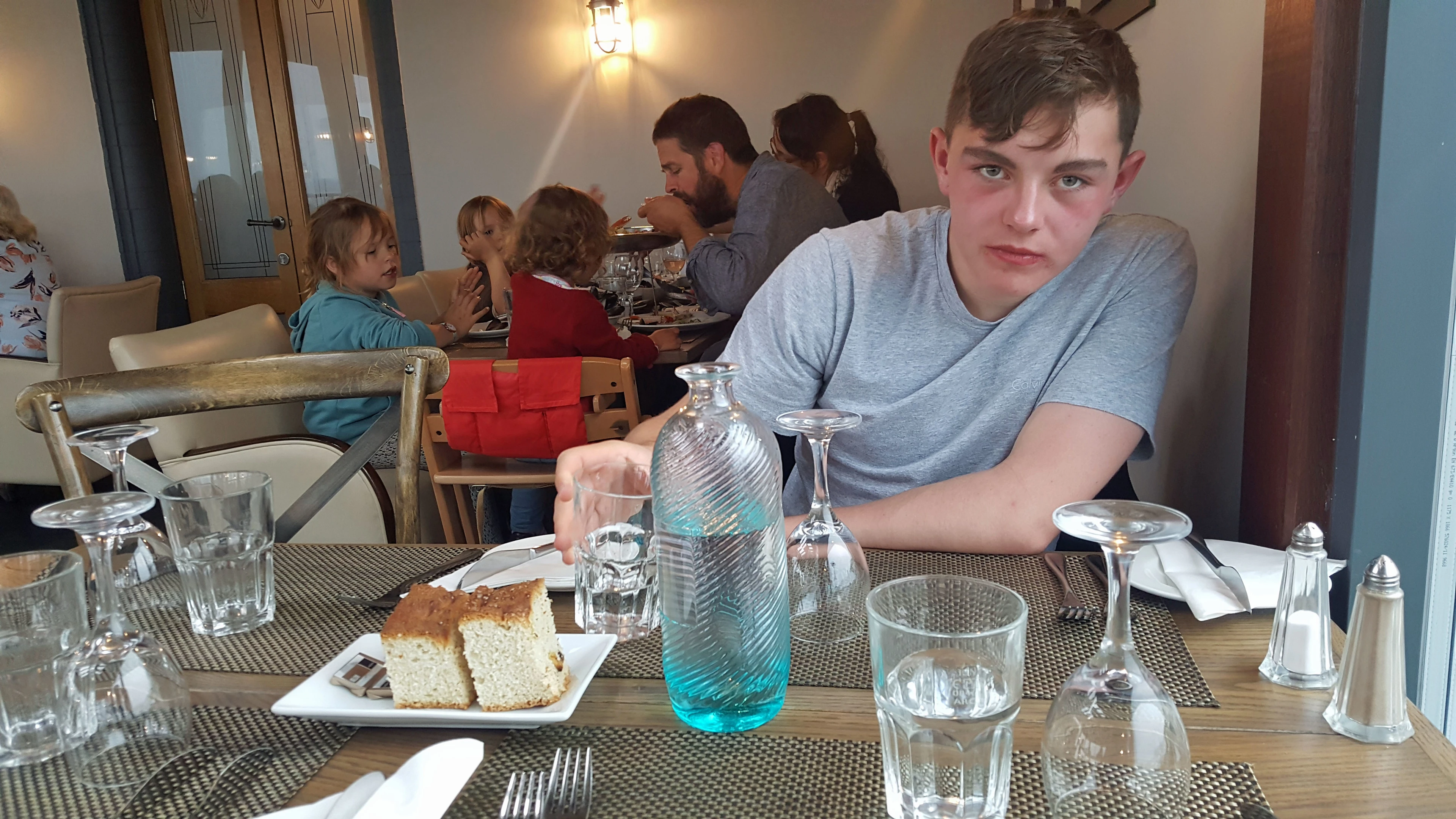 Soup and burger for Dillan and Michael at the West Highland Hotel, Mallaig, while a family tackles a seafood platter.