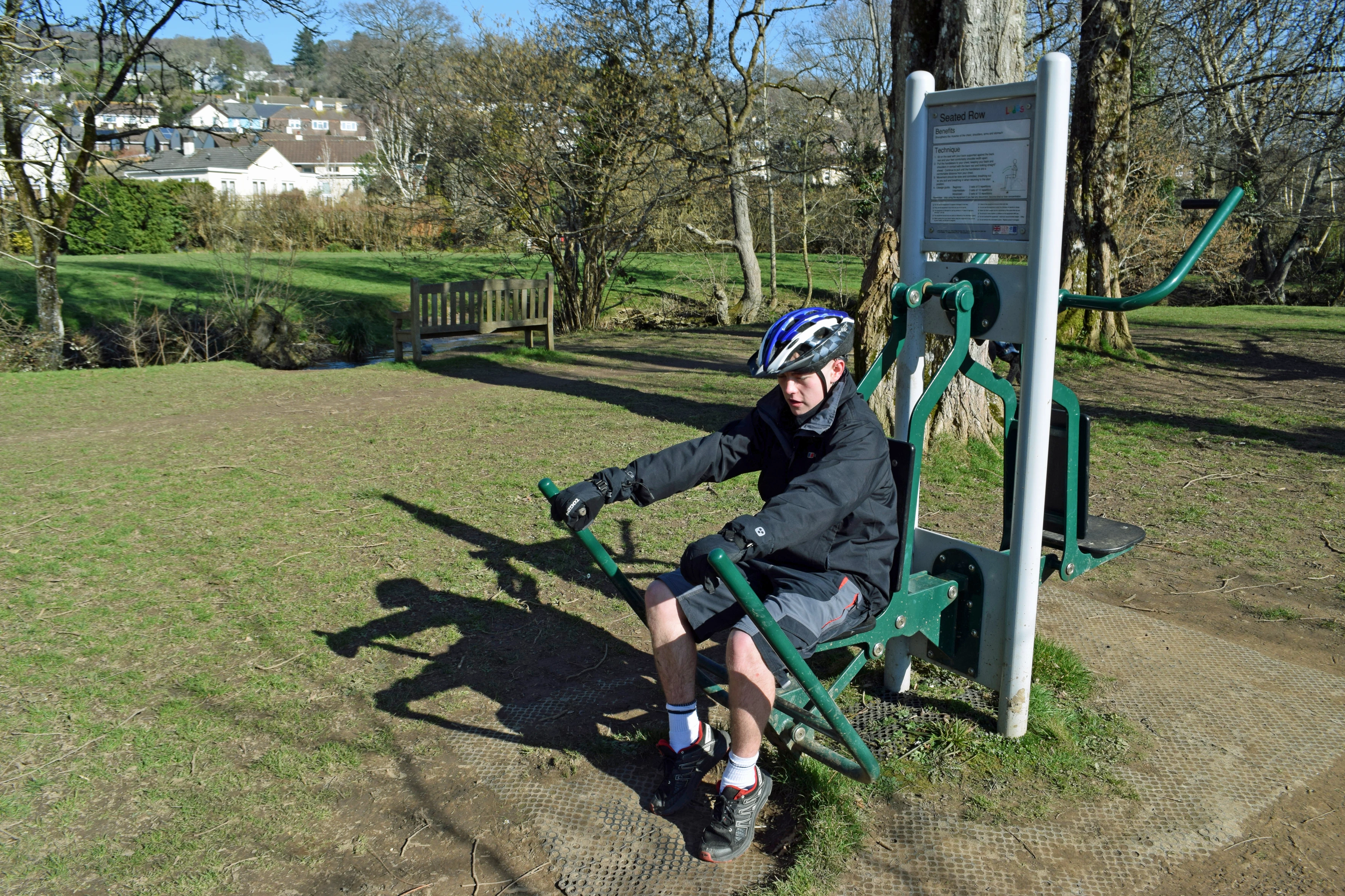 Dillan pushes to the limit on an outdoor machine, Mill Marsh Park, Bovey Tracey.