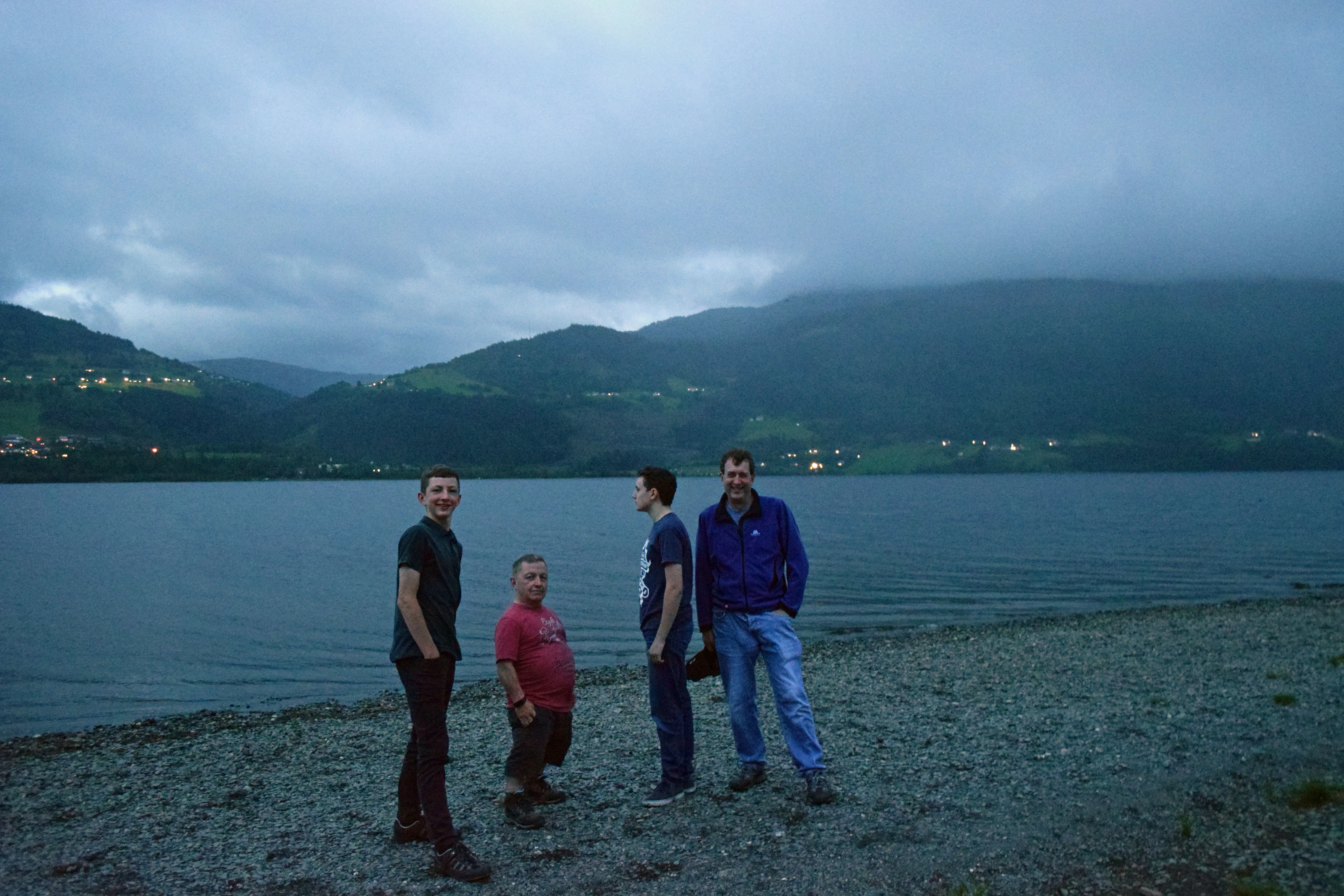 The group on the banks of Voss Lake at Voss youth hostel