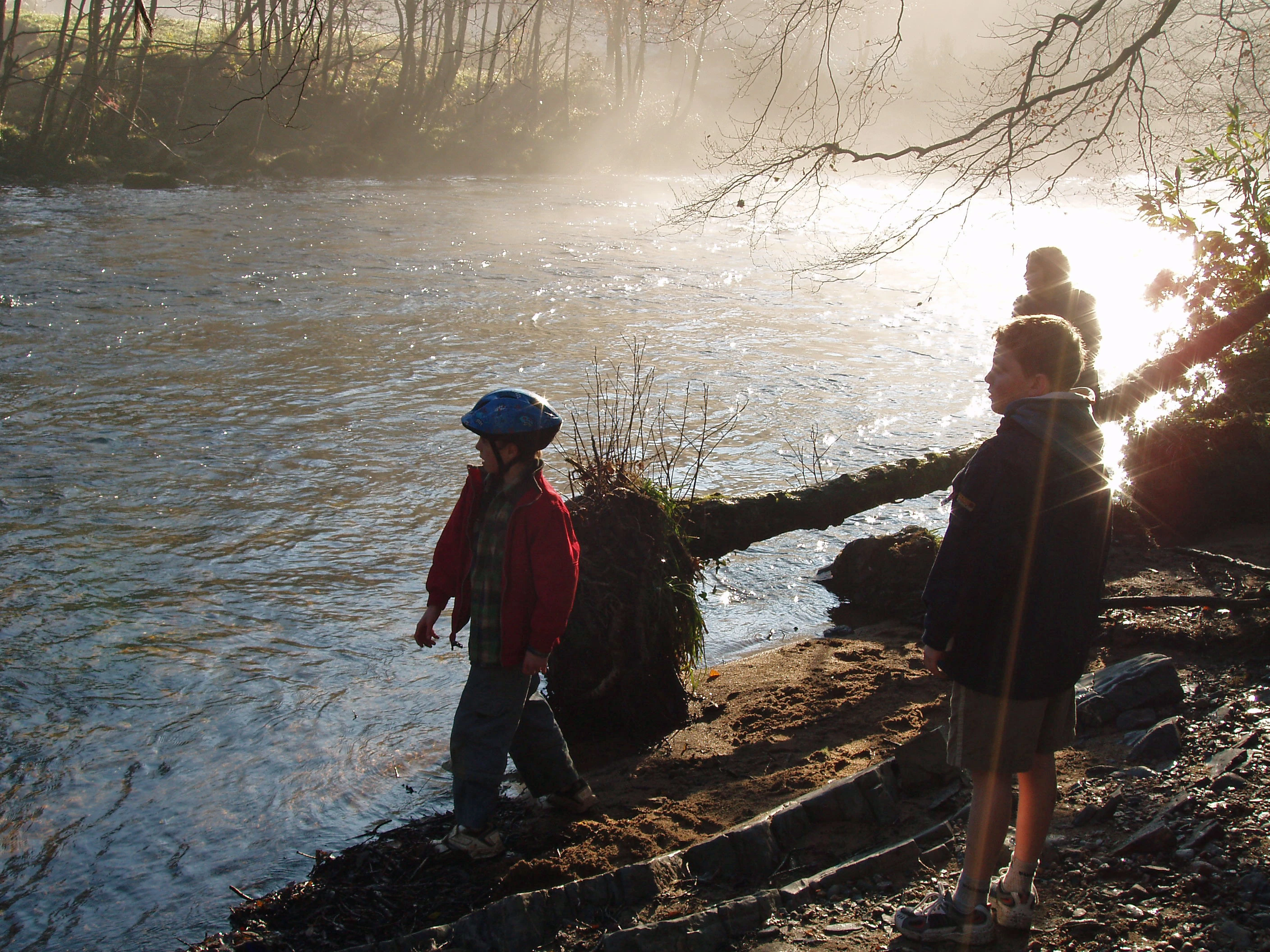 Morning sunshine by the River Dart, mist and light dancing on the water.
