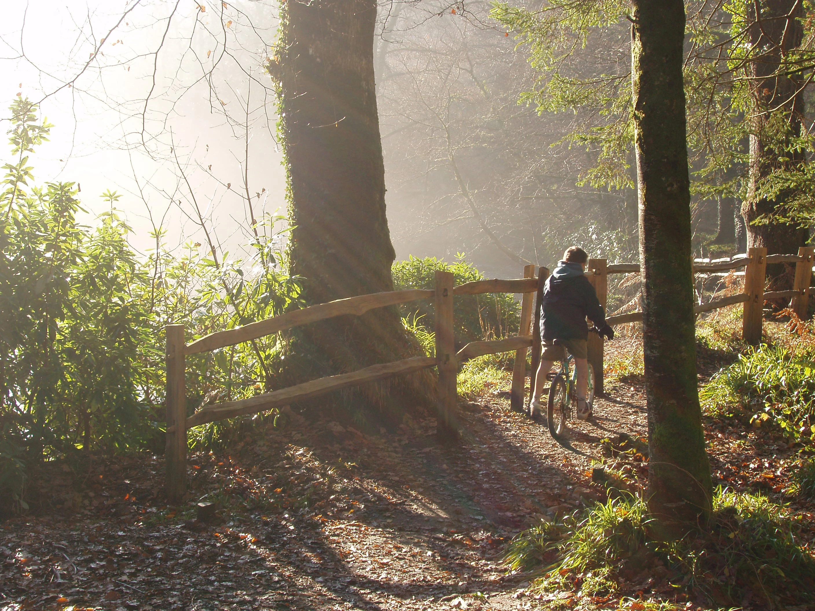 Stunning light as Kane follows the riverside path through Hembury Woods.