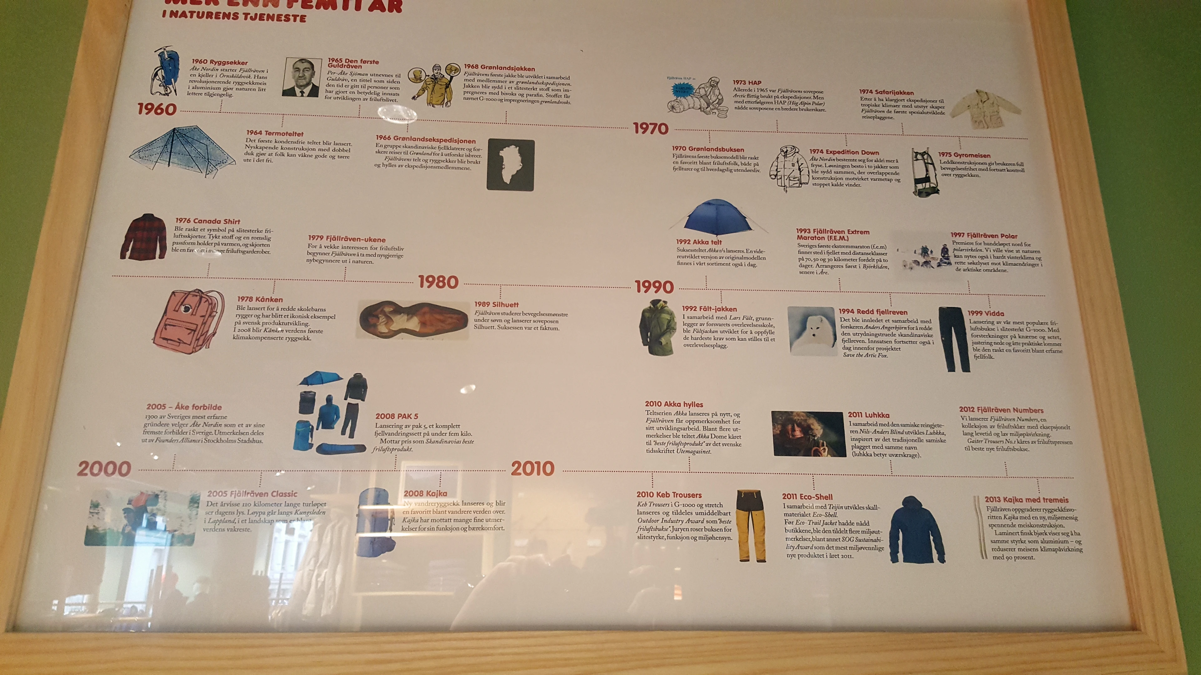 Fjällräven brand history display in their Karl Johans Gate store, Oslo