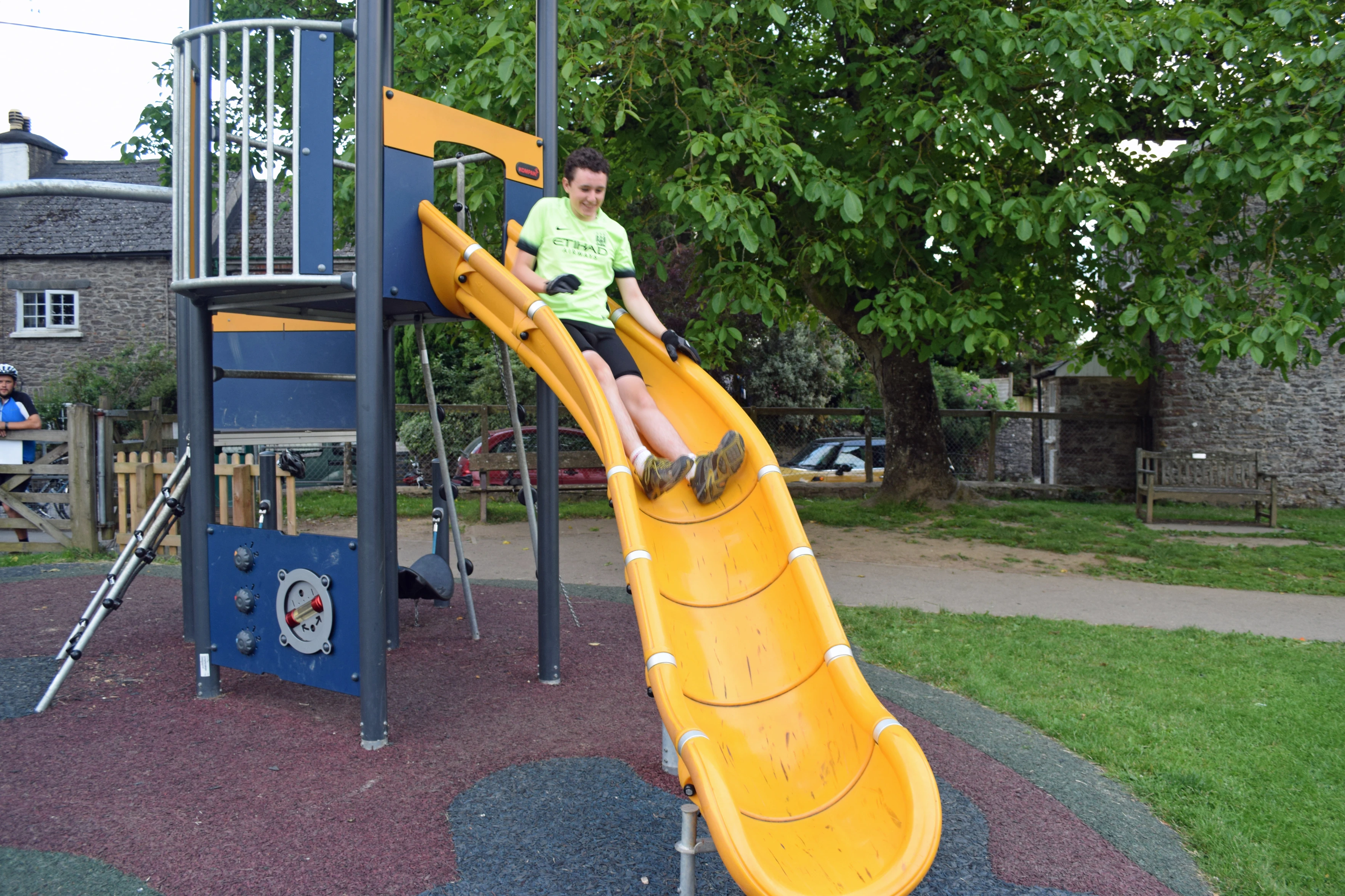 Jude tries the new slide at Broadhempston play park.