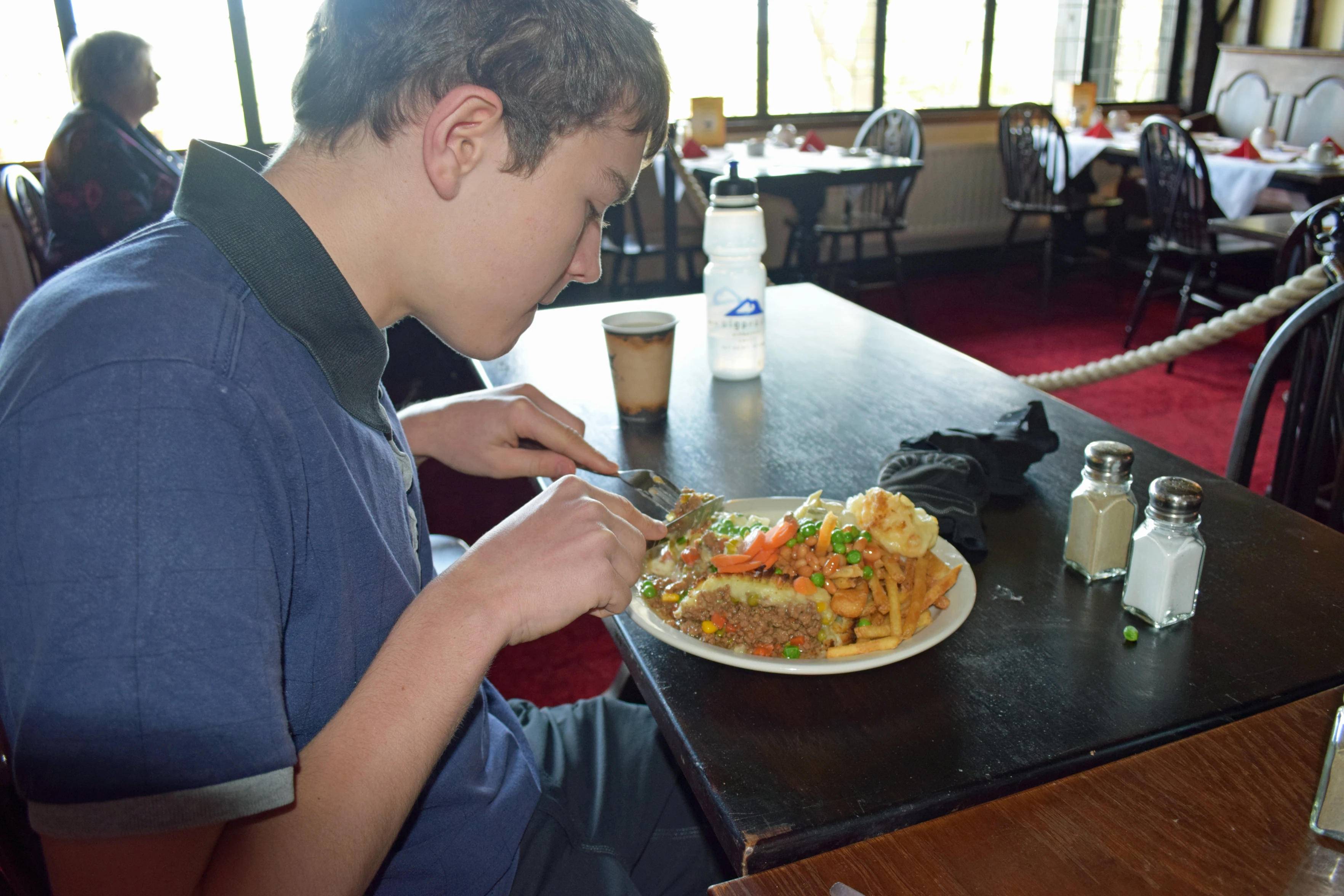 Dillan enjoys a cracking lunch at Jamaica Inn, Bolventor