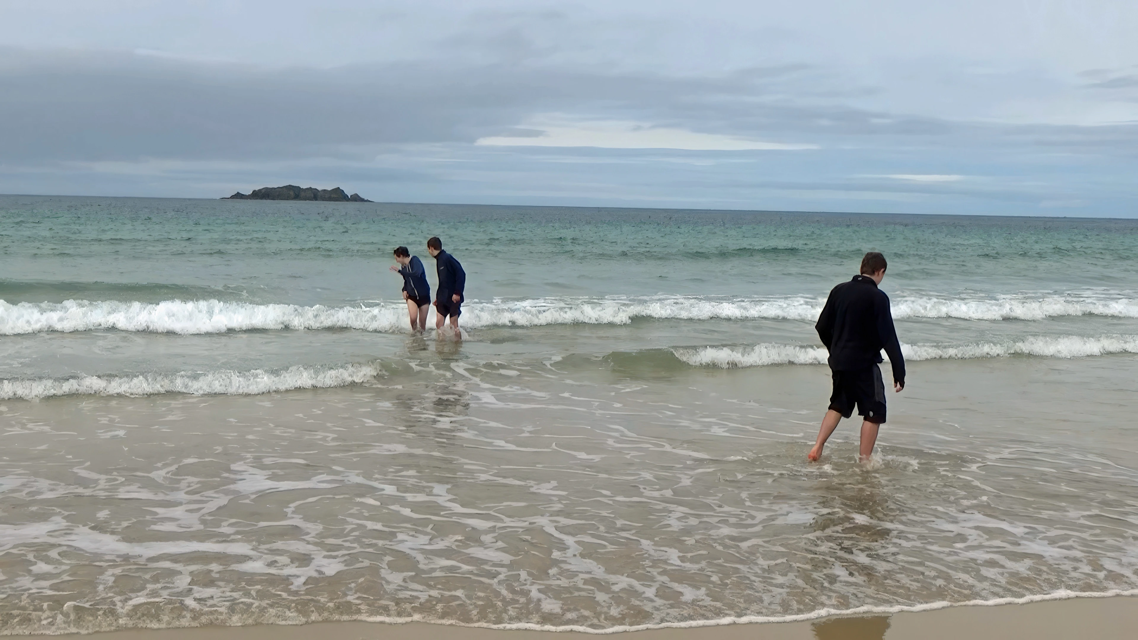 Taking the plunge at Harlyn Bay.