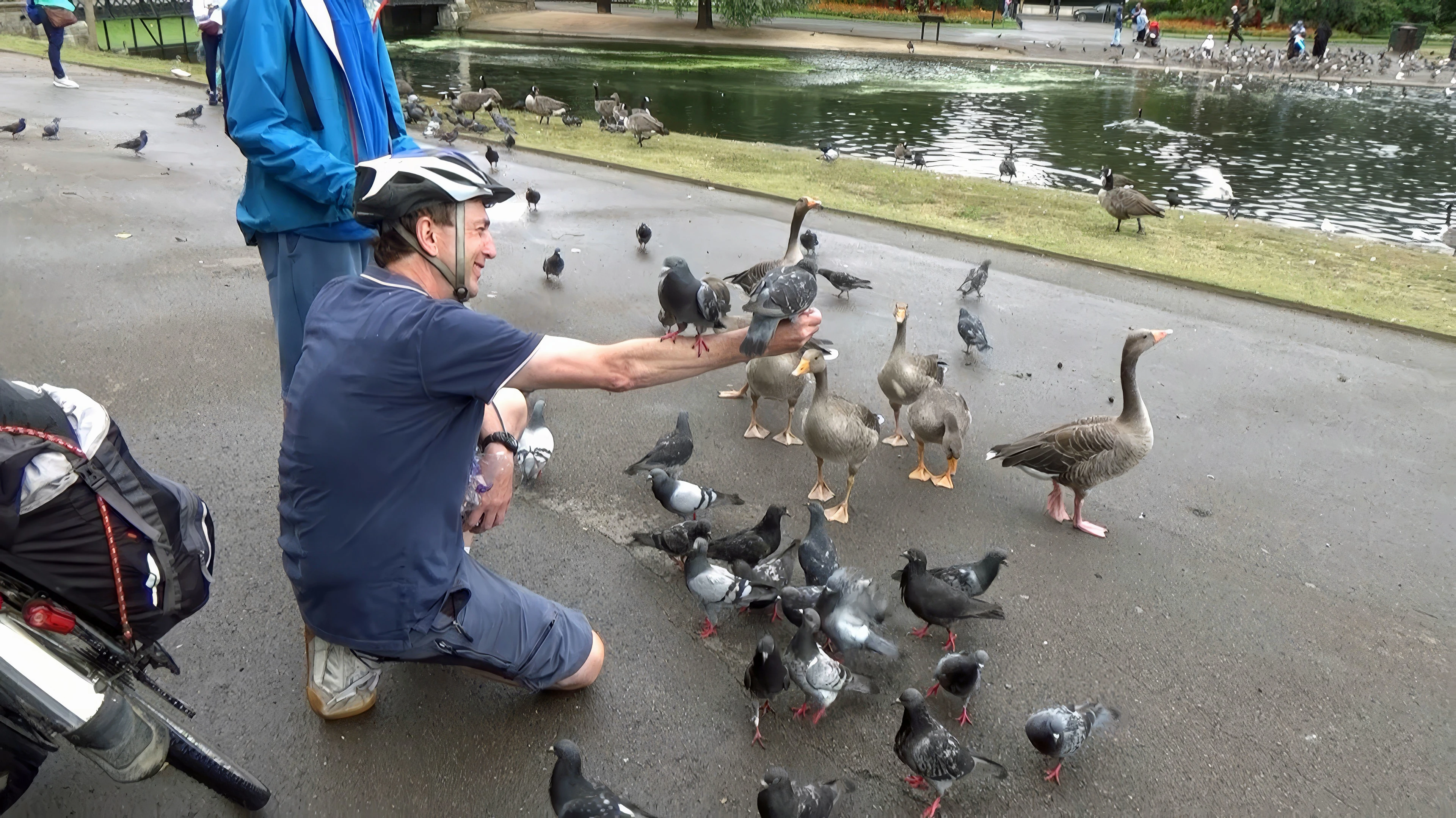 Michael feeds the birds by the Boating Lake in Regent’s Park