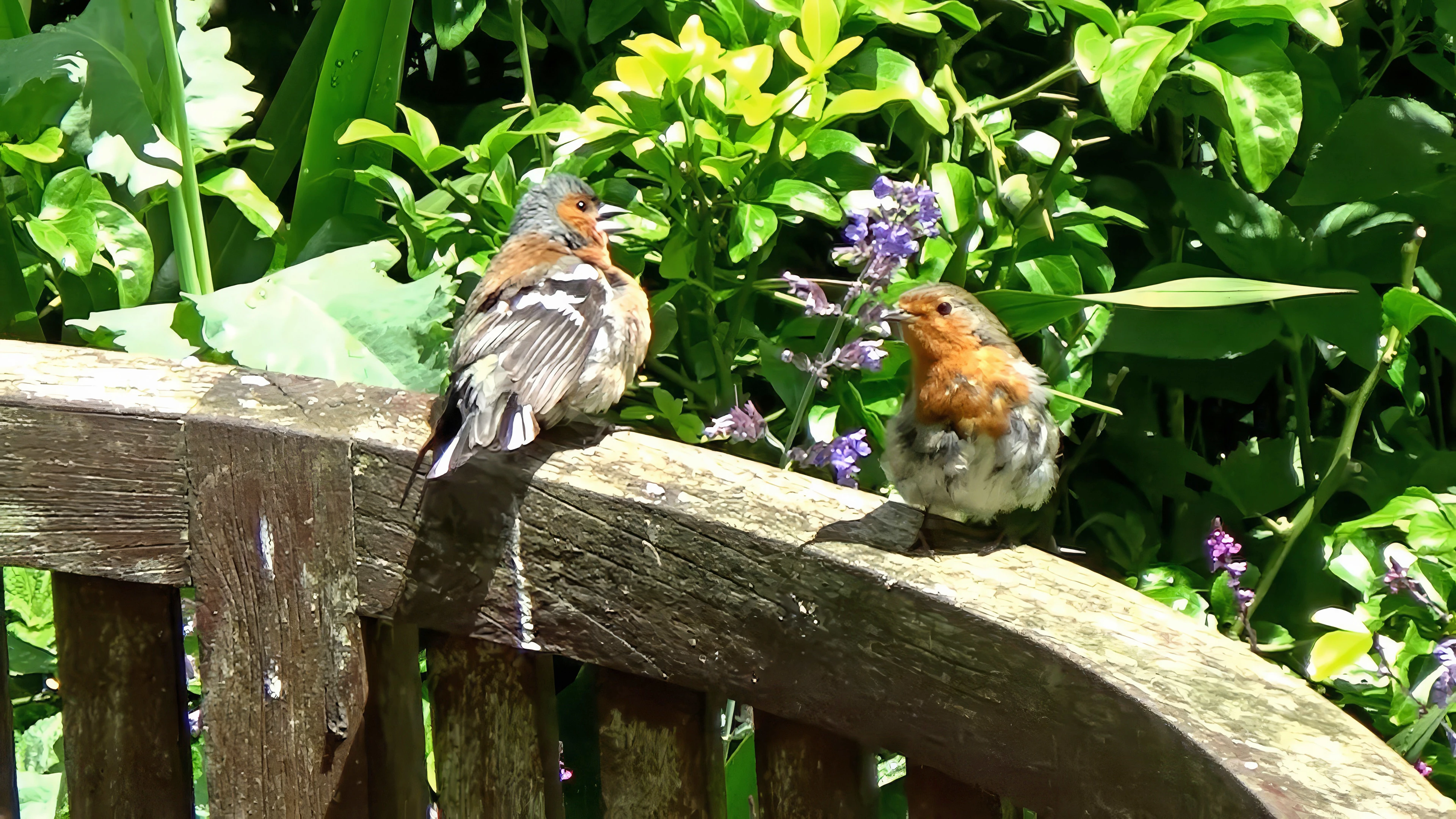 Chaffinch and robin in Hill House Nursery gardens, Landscove