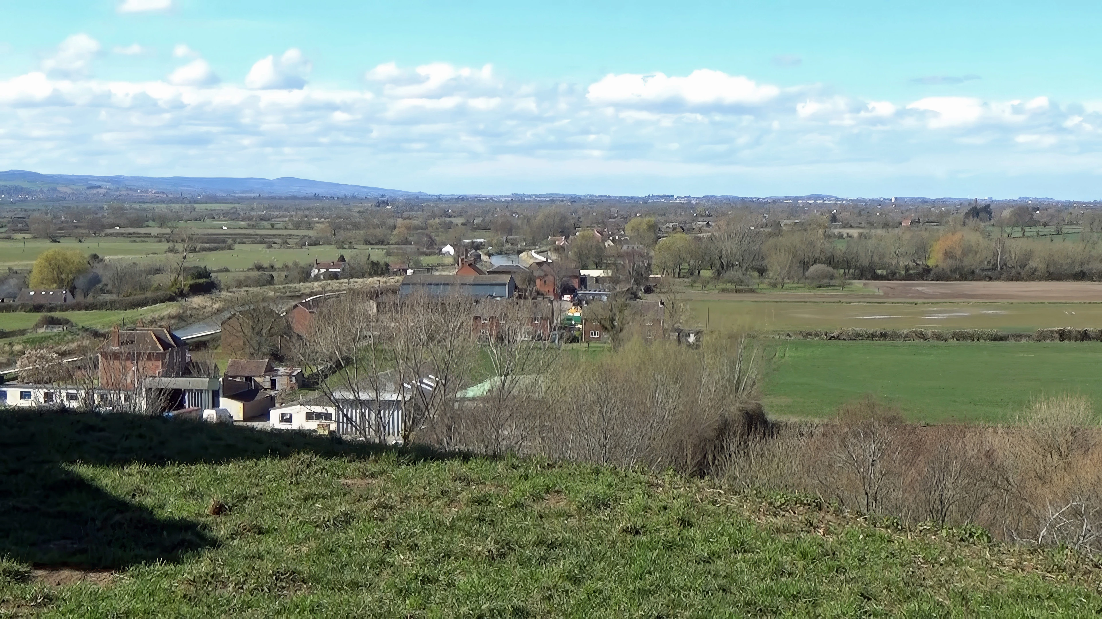 North-west view from Burrow Mump towards Westonzoyland, 13.3 miles in.