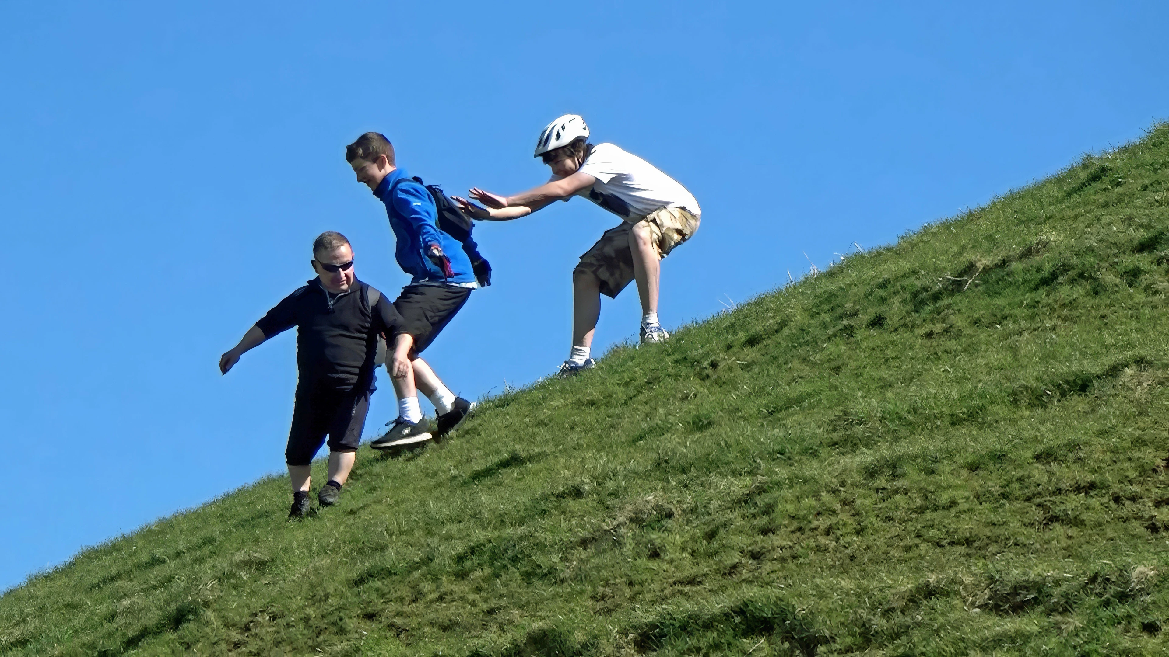 Lawrence helps George down Burrow Mump.