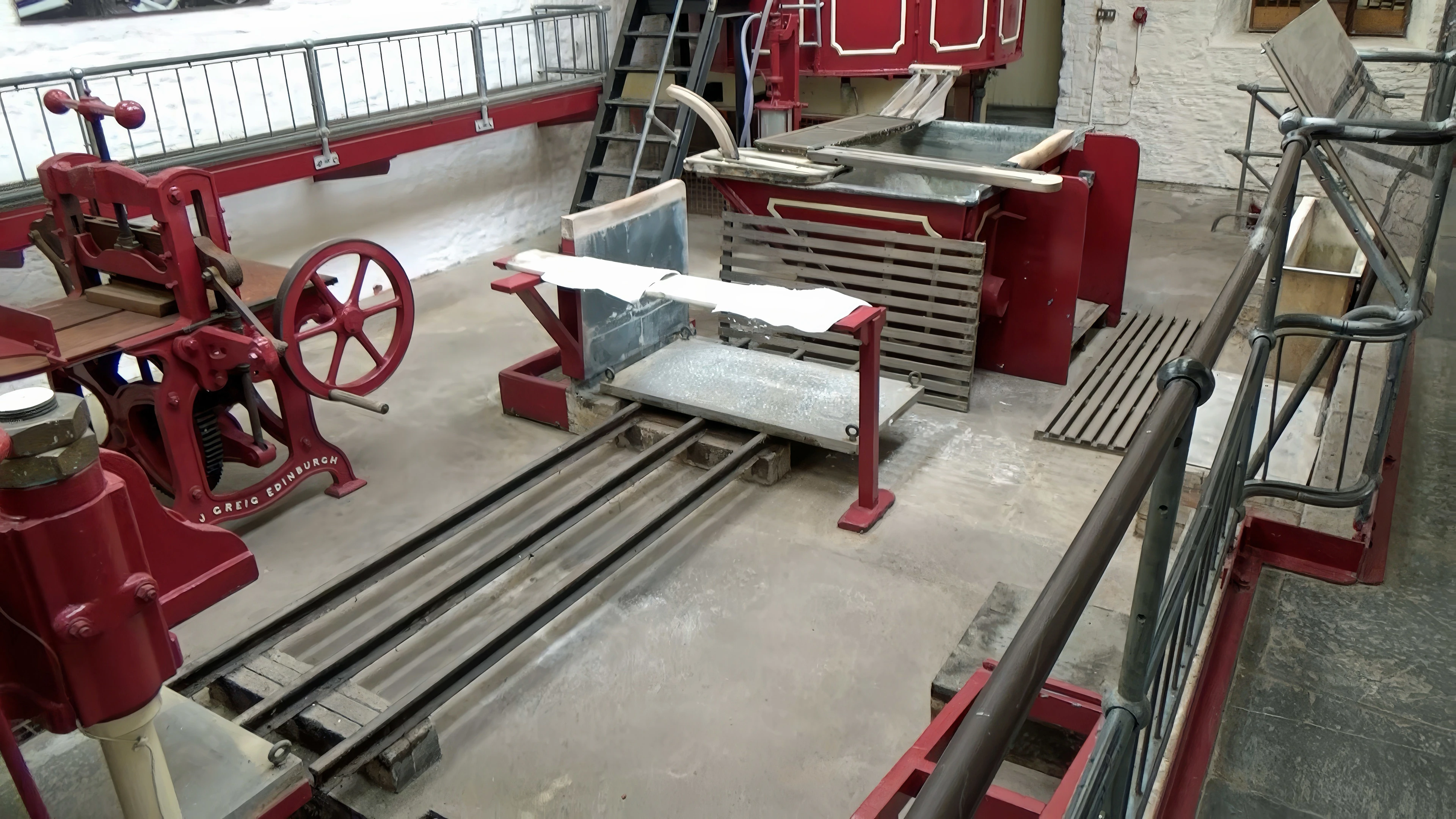 Paper-making machine in the paper mill museum at Wookey Hole.