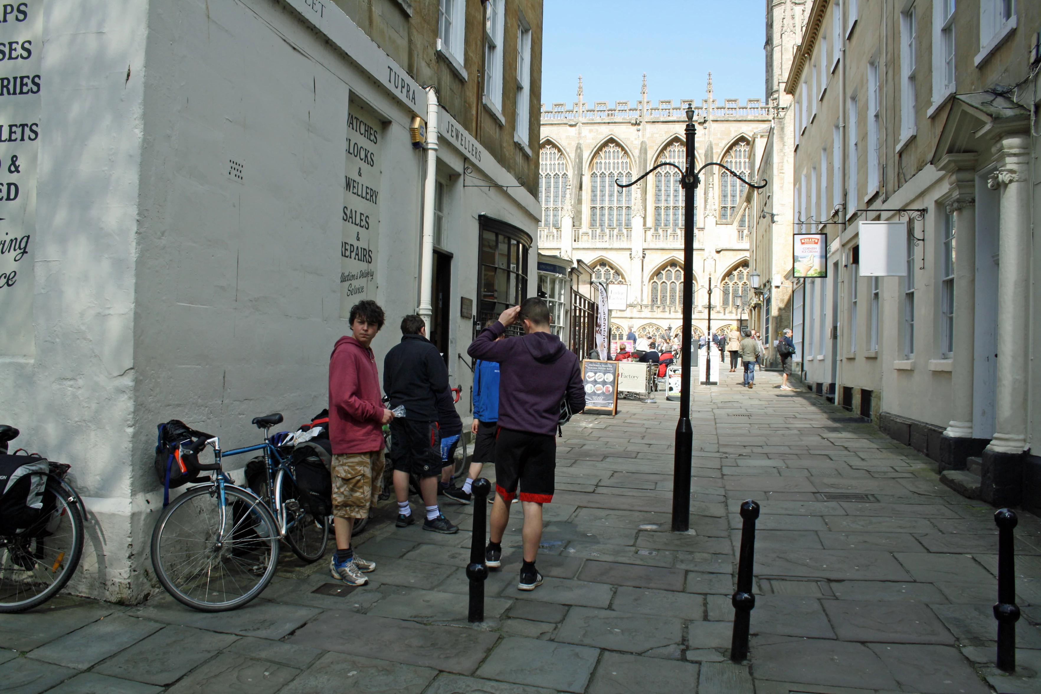 Dillan and Michael rejoin the group near Bath Abbey after the Baths tour