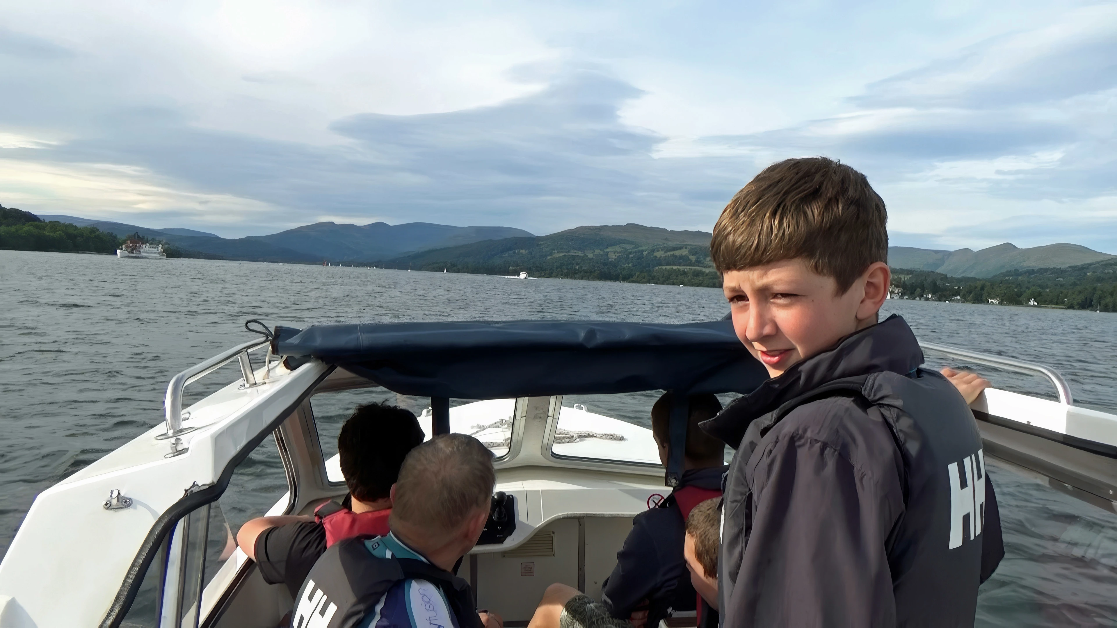 Soaking up the sun in our hire boat on Windermere