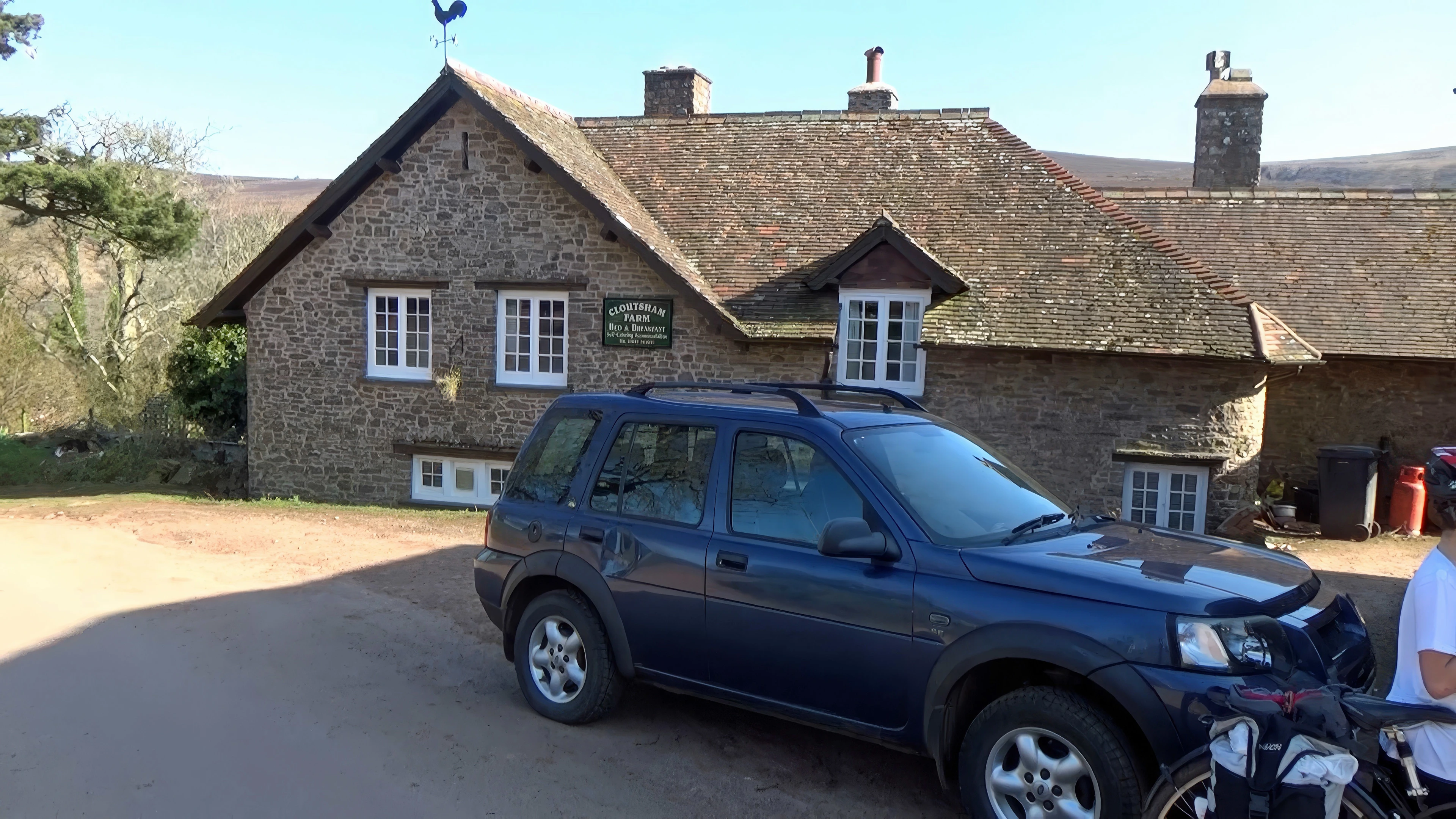 Quick stop at Cloutsham Farm to refill bottles before the Exmoor climb.
