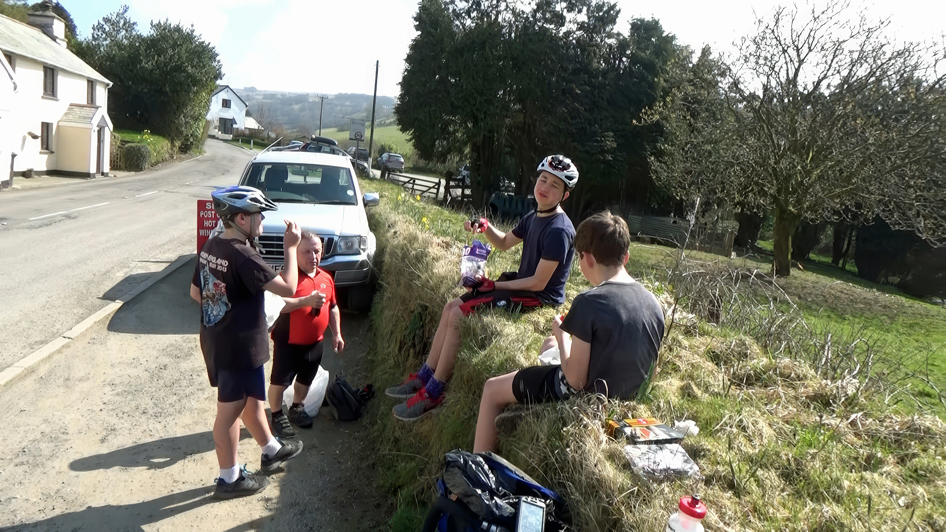 Sunny lunch opposite Challacombe Village Stores and Post Office