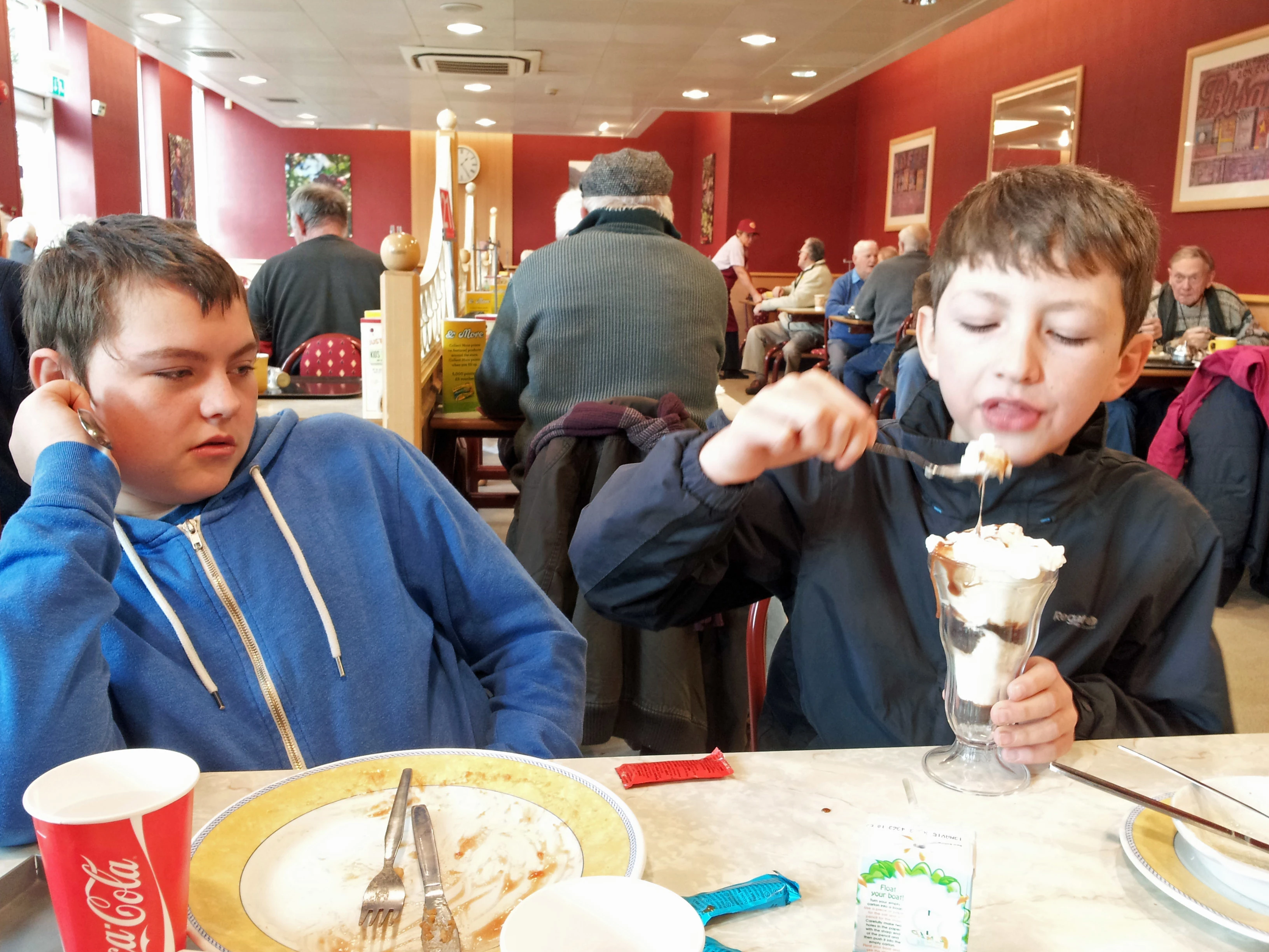 George enjoying ice cream in Morrisons café, Totnes. New photo for 2024.