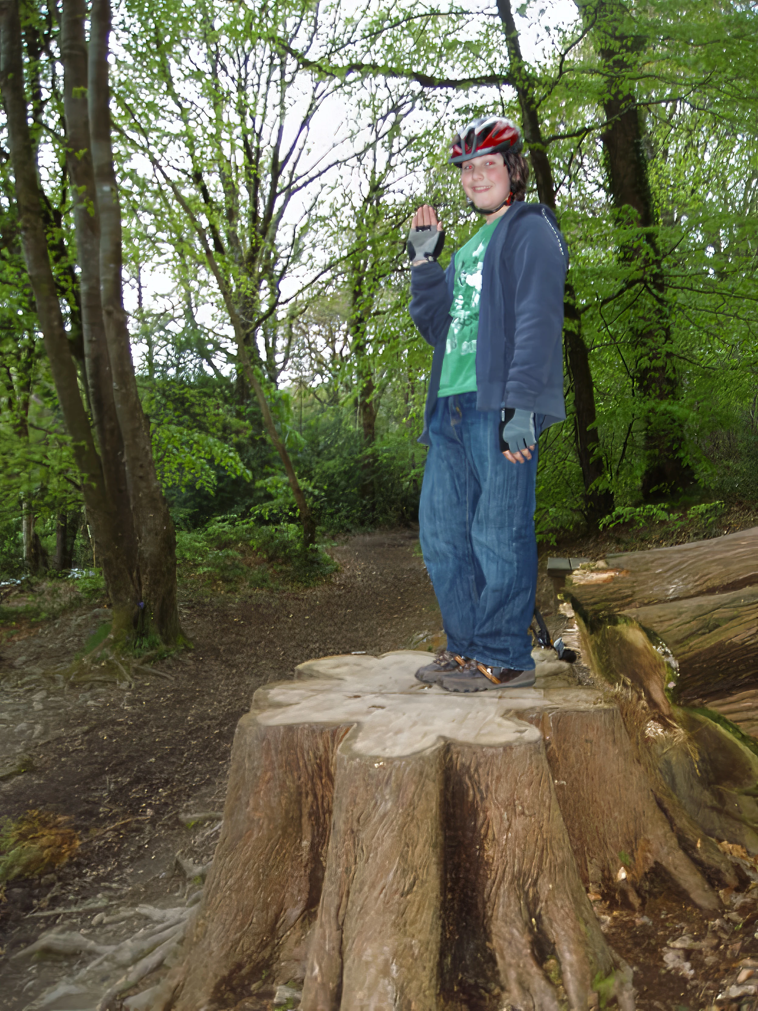 Zac strikes a low-light pose in Whiddon Scrubs Wood, halfway down the track — new for 2024.