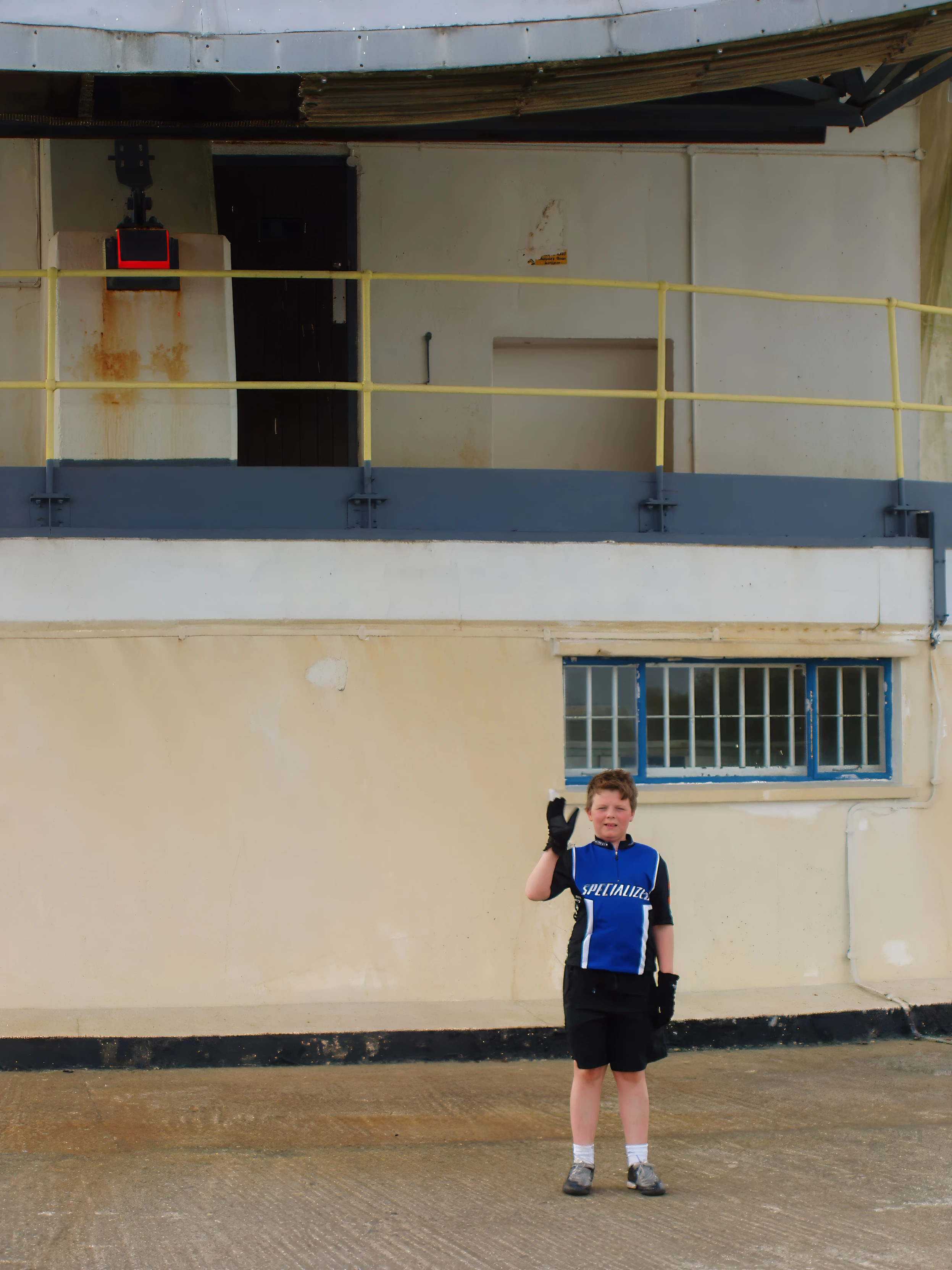 Ashley by the Arthur satellite dish at Goonhilly Downs.