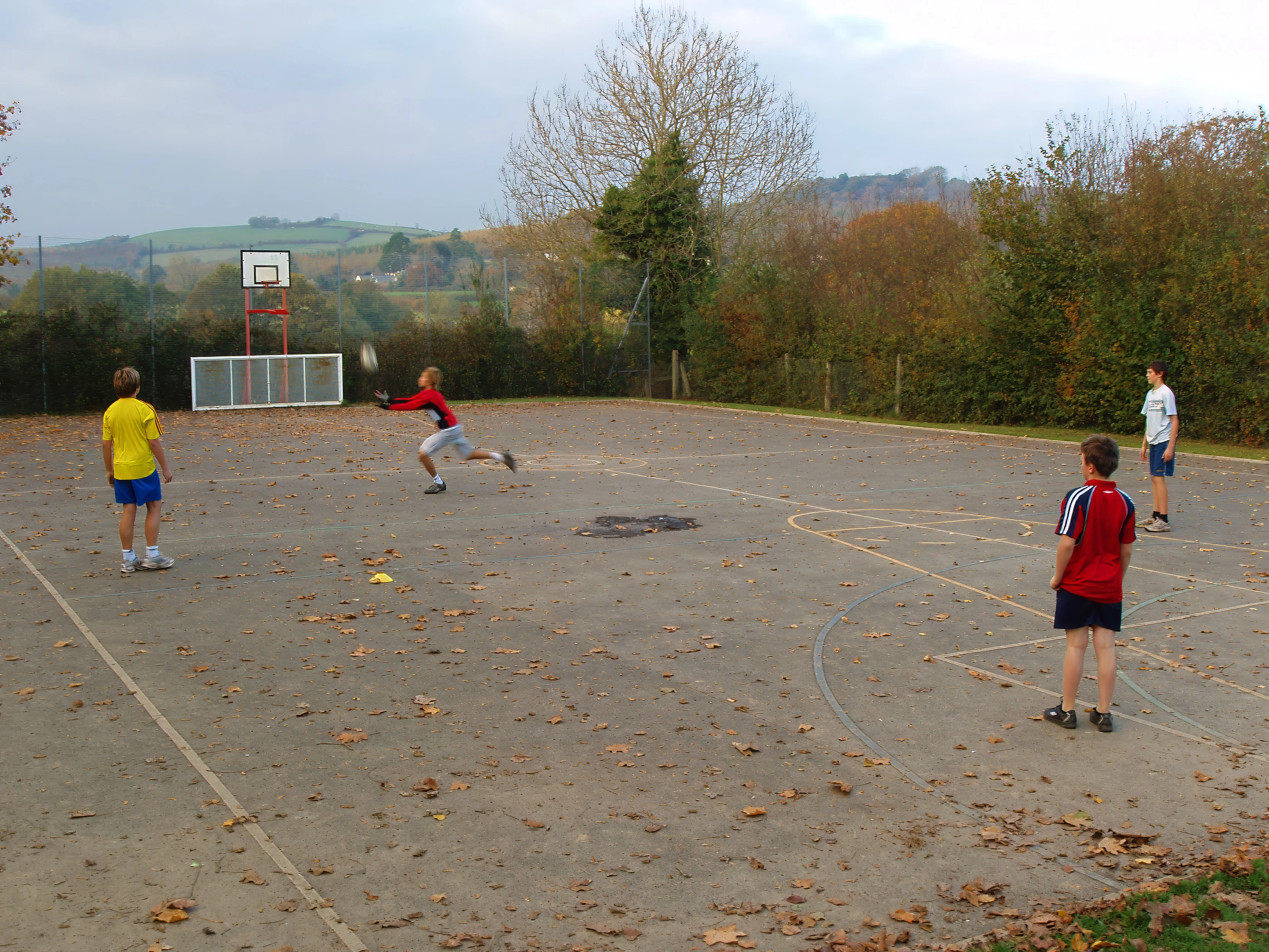 The boys play 'rugby' with a local youngster in Broadhempston Play Park.